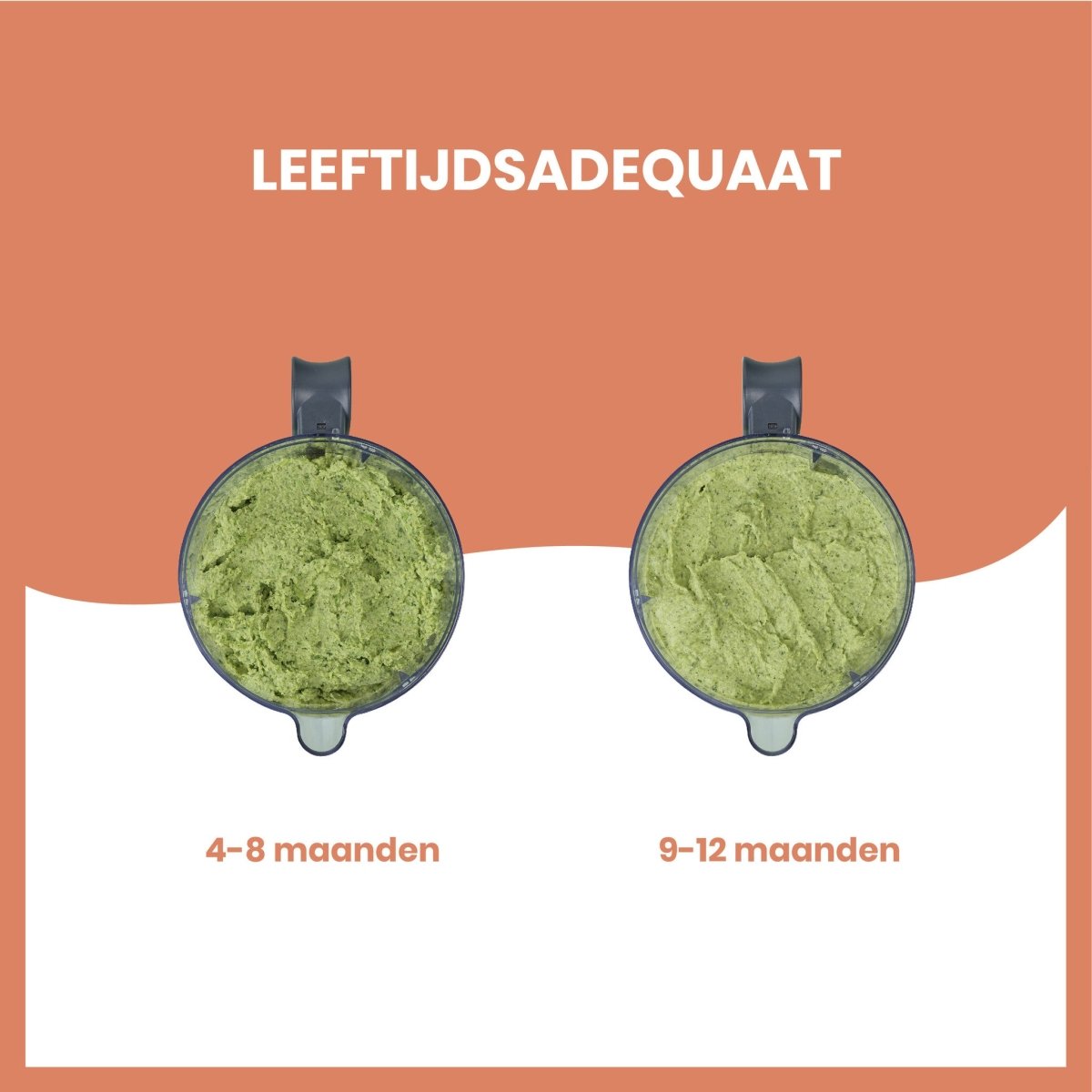 De multifunctionele Nutribaby One foodprocessor biedt een totale inhoud van 2000 ml (1300 ml voor koken en 700 ml voor mixen). U kunt gelijktijdig koken en mixen!U kunt ook het kookbakje kan in 2 niveaus verdelen, dankzij het stoommandje en gelijktijdig een grotere variatie aan voedingsmiddelen koken. Met de foodprocessor Nutribaby One kunt u zo snel meerdere maaltijden voor de hele week bereiden.