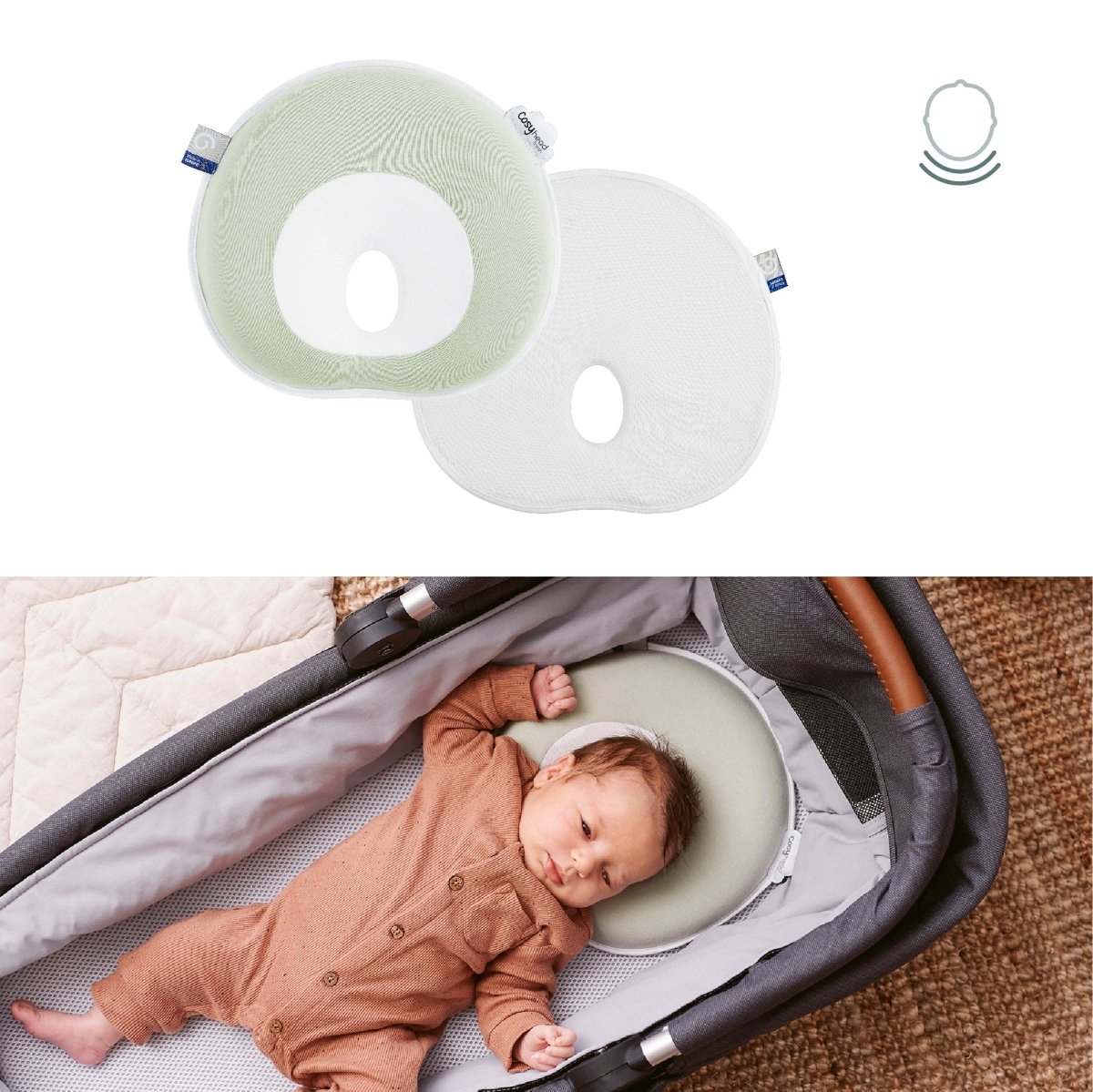 Uitgerust met een antislip achterkant voor betere ondersteuning, zal de Cosyhead Fresh je baby begeleiden tot hij 3 maanden oud is.