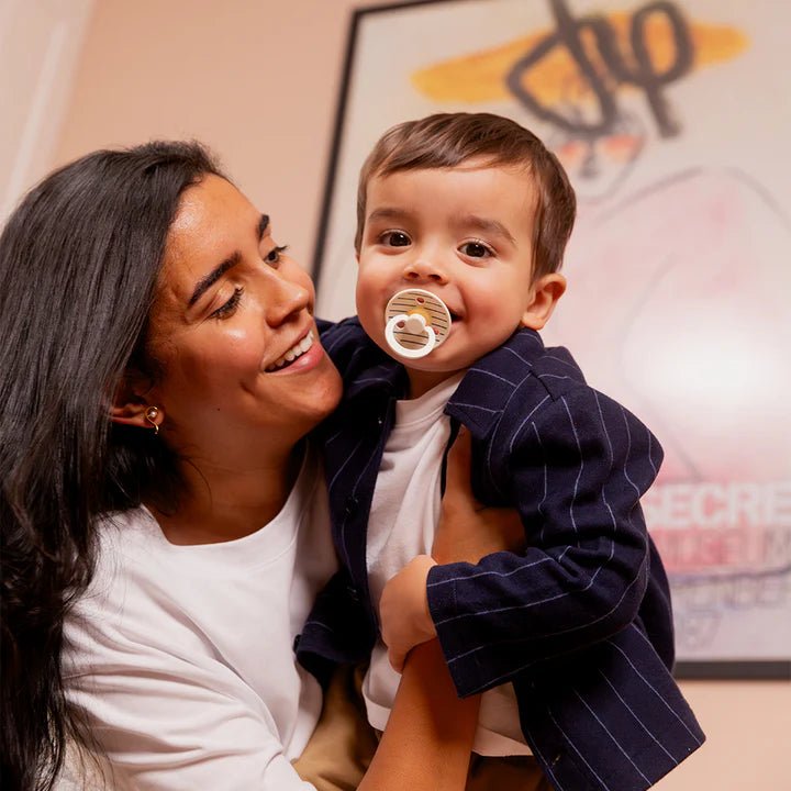 Trendy patronen en hoogwaardige fopspenen komen samen in de BIBS Studio-collectie.