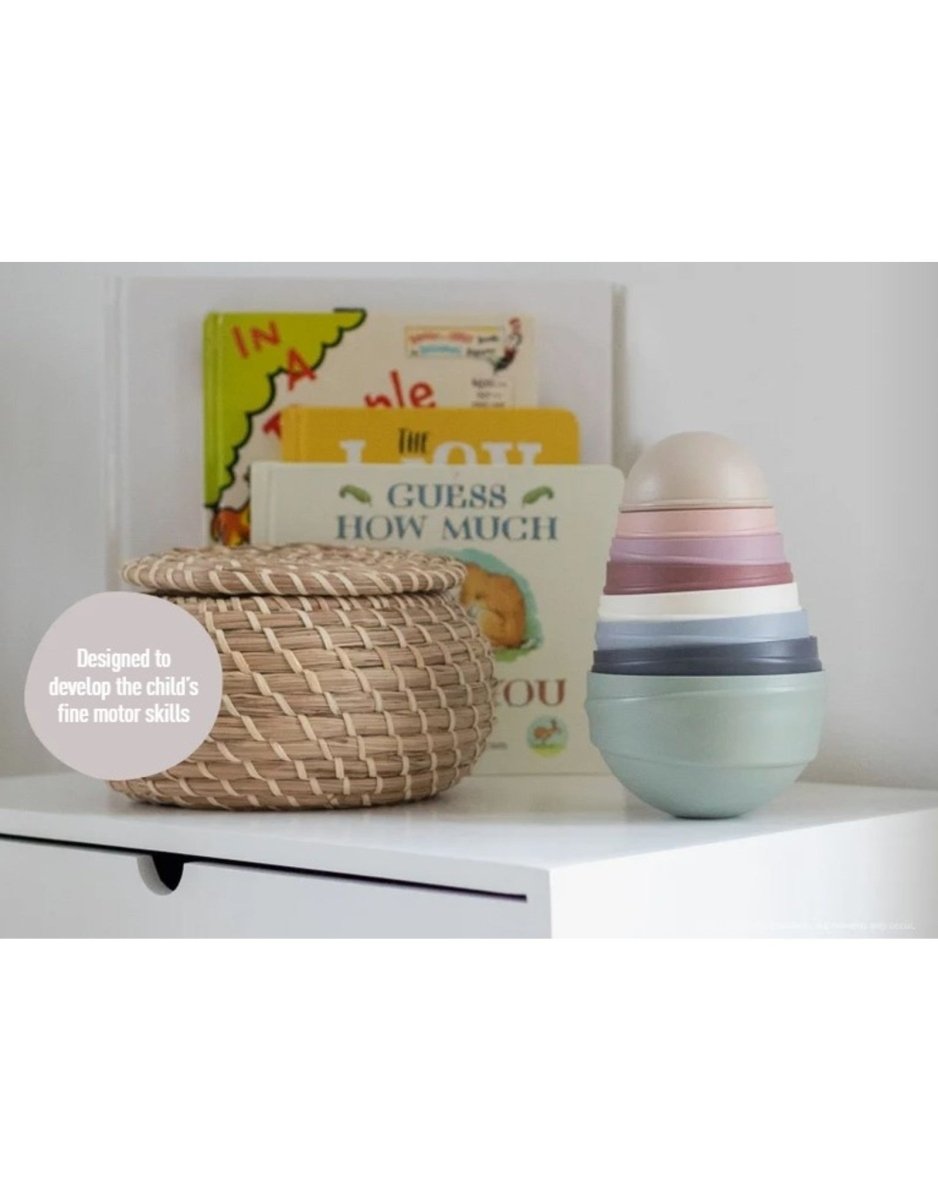 De BIBS Wobbly Tower is een multifunctionele stapeltoren met eindeloze gebruiksmogelijkheden.