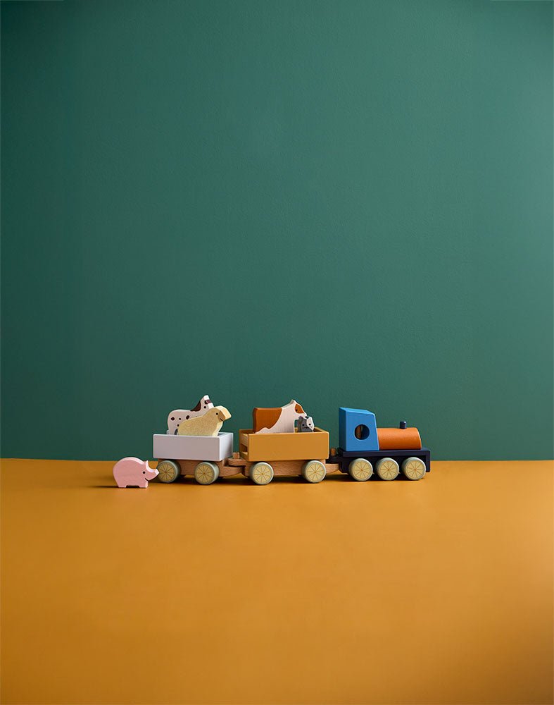 • Product: houten boerderijtrein met dieren