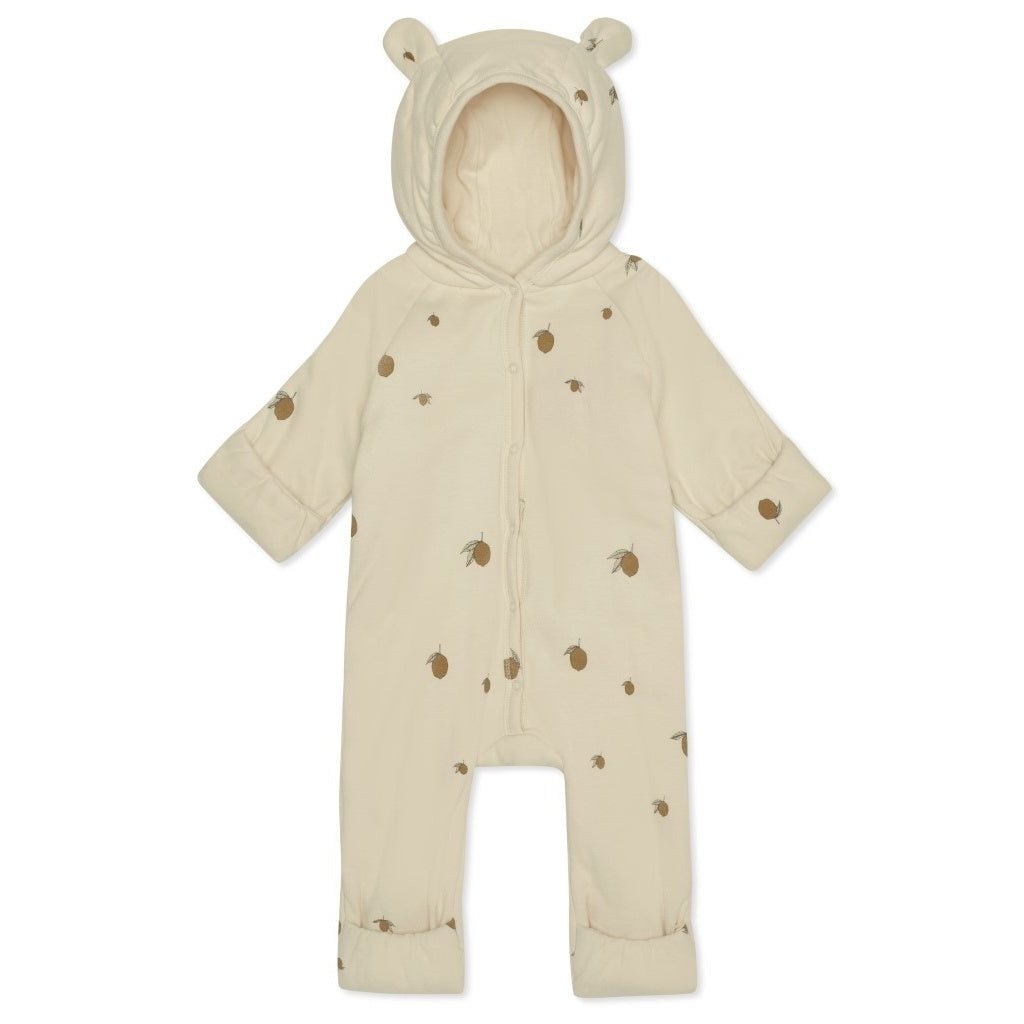 Onze licht gewatteerde newborn onesie met capuchon heeft de schattigste oortjes en is gemaakt met opvouwbare handen en voeten