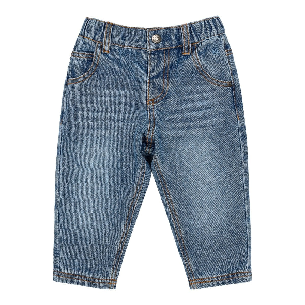 Een klassieke denim broek met een zachte twist: stoer van buiten, comfortabel van binnen. De elastische tailleband met drukknoopsluiting maakt aan- en uitkleden eenvoudig, terwijl de zachte stof van 100% biologisch katoen Oeko-Tex gecertificeerd is en vriendelijk voor de gevoelige huid. Voorzien van handige steekzakken en een subtiel Little Dutch borduursel bij de zakopening, waardoor de broek stijlvol én praktisch is.