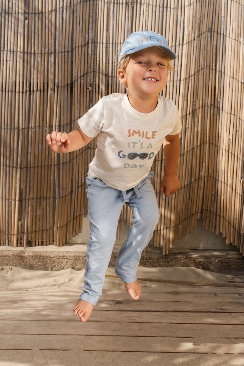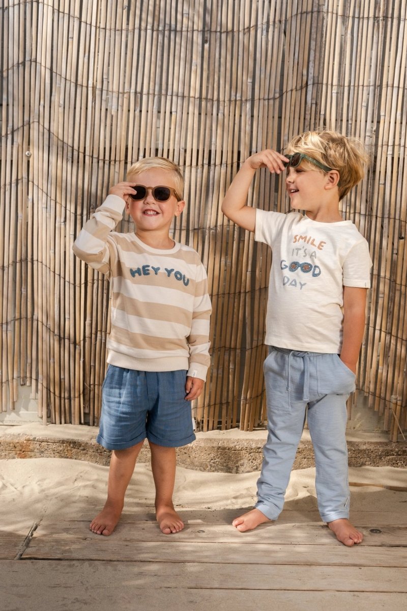 Zacht, stoer en perfect om in te bewegen: deze broek in Steel Blue is gemaakt van lichte sweatkwaliteit en biedt ultiem comfort voor elke dag. De elastische tailleband met koordje zorgt voor een fijne pasvorm, terwijl de omslag bij de enkels en de steekzakken een speels accent toevoegen. Gemaakt van 100% biologisch katoen en Oeko-Tex gecertificeerd, is deze broek zacht voor de huid en duurzaam.