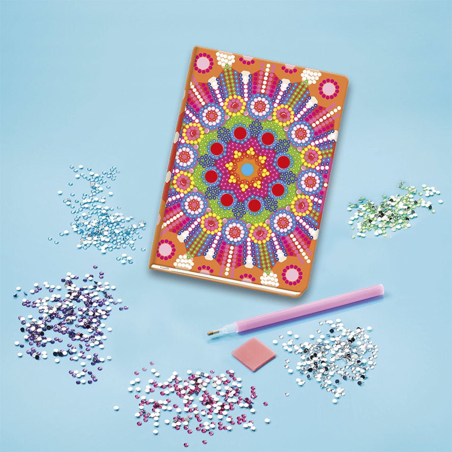 Met deze set kan kan je je eigen notebook versieren met glittersteentjes. De set bevat een template en meer dan 1500 steentjes waarmee je de gehele voorzijde bedekt. Gebruik het boekje voor al je aantekeningen, gedichten, wensen of als dagboekje.