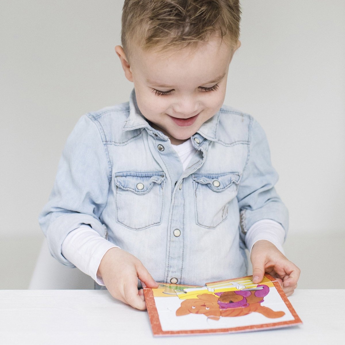 Deze set bestaat uit 4 puzzels met elk een kleurrijke afbeelding van knuffelkat Dikkie Dik, alleen of met één van zijn vele, vrolijke vriendjes. De jongste puzzelaars beginnen met een puzzel van 4 stukken en wie toe is aan de volgende uitdaging kan een puzzel van 6, 9 of 16 stukken leggen. Wie kent deze ondeugende kat uit de boeken van Jet Boeke niet?