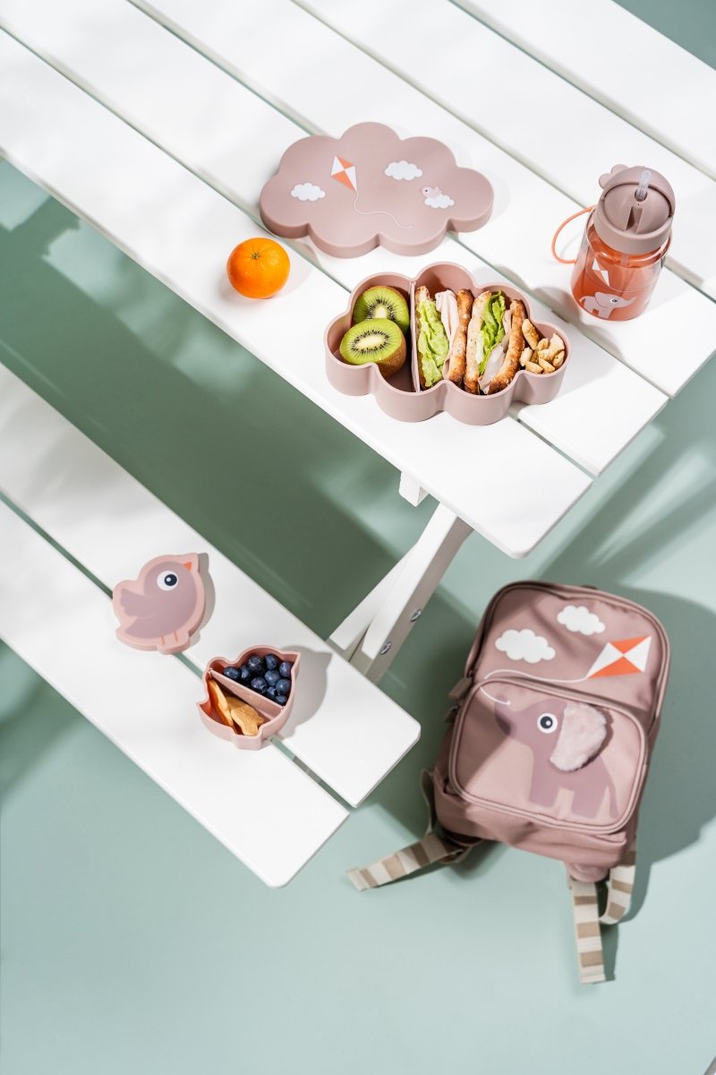 - Poederkleurige set met rietjesfles, snackbox en lunchbox