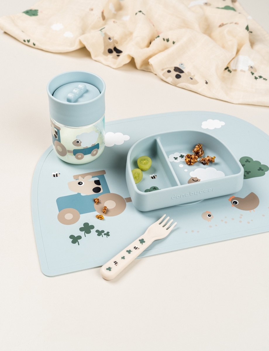 Maak het eten van je kleintje overzichtelijk en morsvrij met de Siliconen Placemat in Tiny farm Blue. Gemaakt van 100% voedselveilige siliconen, duurzaam, flexibel en eenvoudig schoon te maken. Ideaal voor dagelijks gebruik thuis of onderweg.
