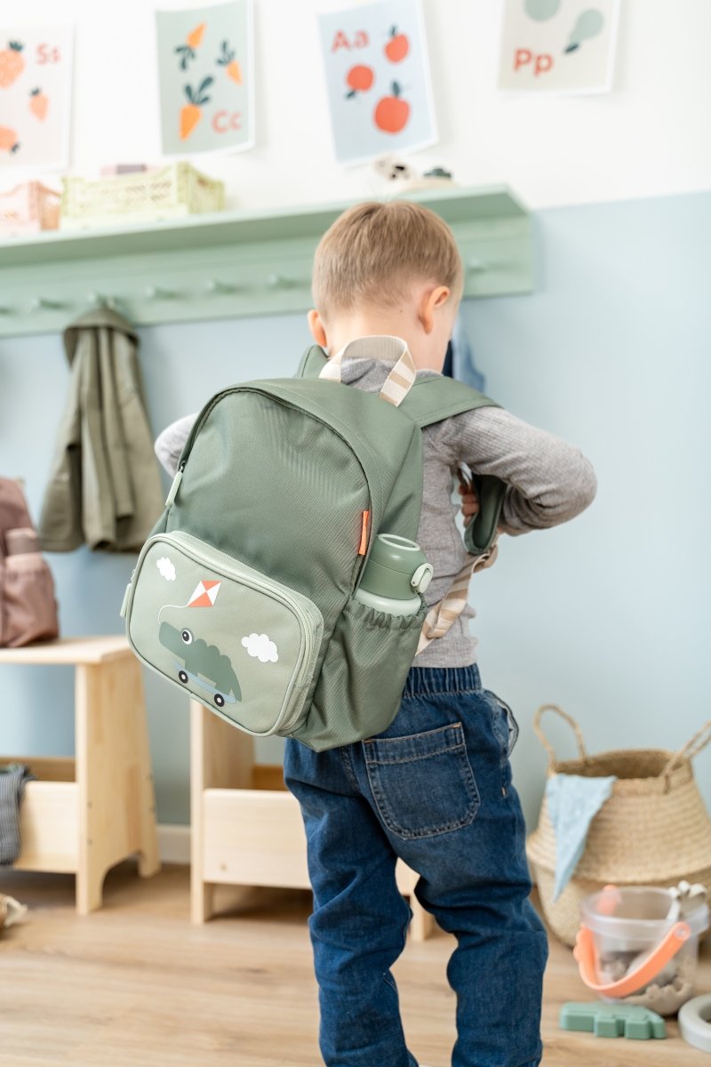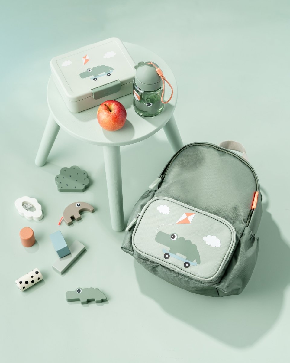 - Koele groene kleur met een leuk motief van Croco- Gewatteerde rug en verstelbare gewatteerde schouderbanden