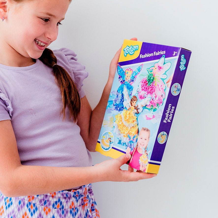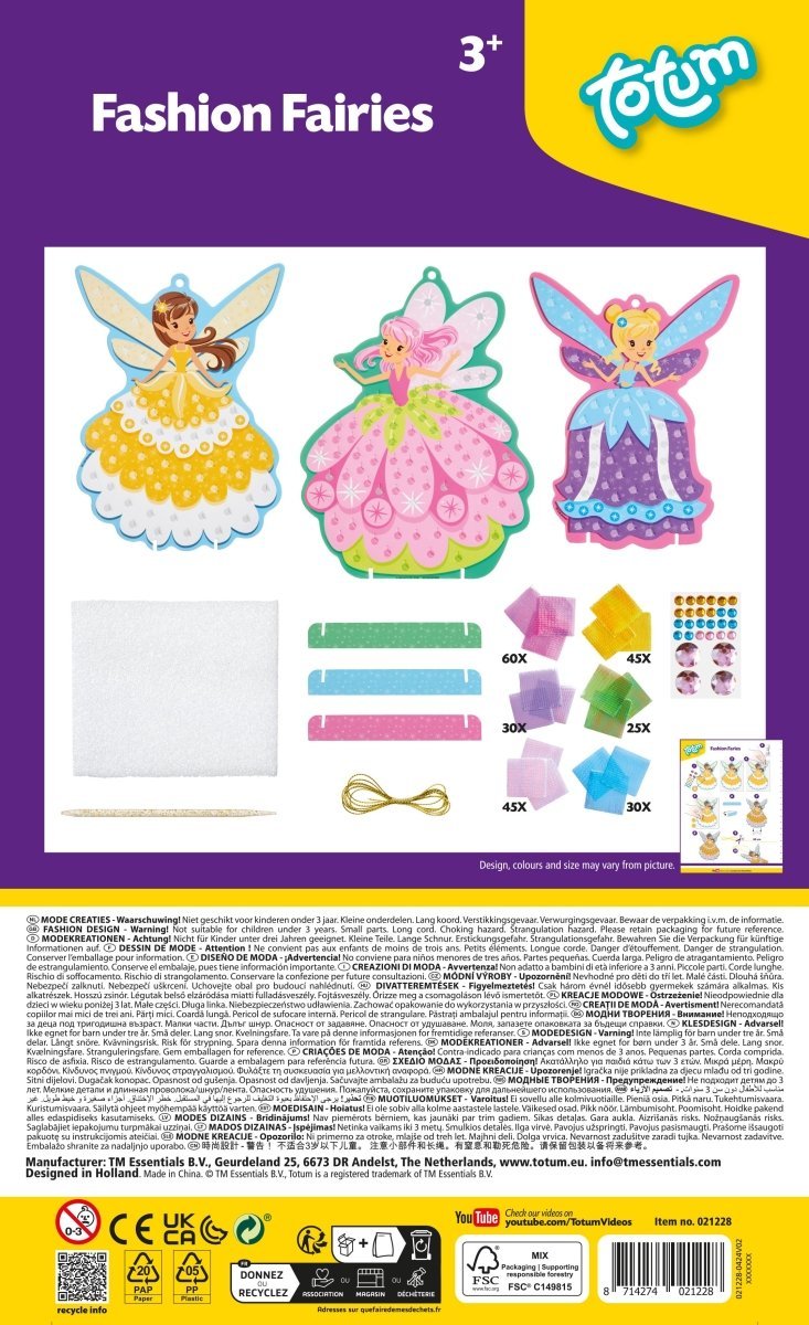 Met deze originele knutselset van Totum maken modeprinsesjes de mooiste feefiguren in sjieke baljurken: geef je feepopjes de mooiste prinsessenjurken met 6 verschillende kleuren lurex glansstofjes. Gebruik het meegeleverde prikstokje en onderleggertje om de stukjes glansstof in het karton te prikken. Wow! wat een mooi 3D resultaat! Kies je eigen kleurcombinaties voor de mooiste baljurken. Wie ga jij verrassen met je mooiste mode creatie?