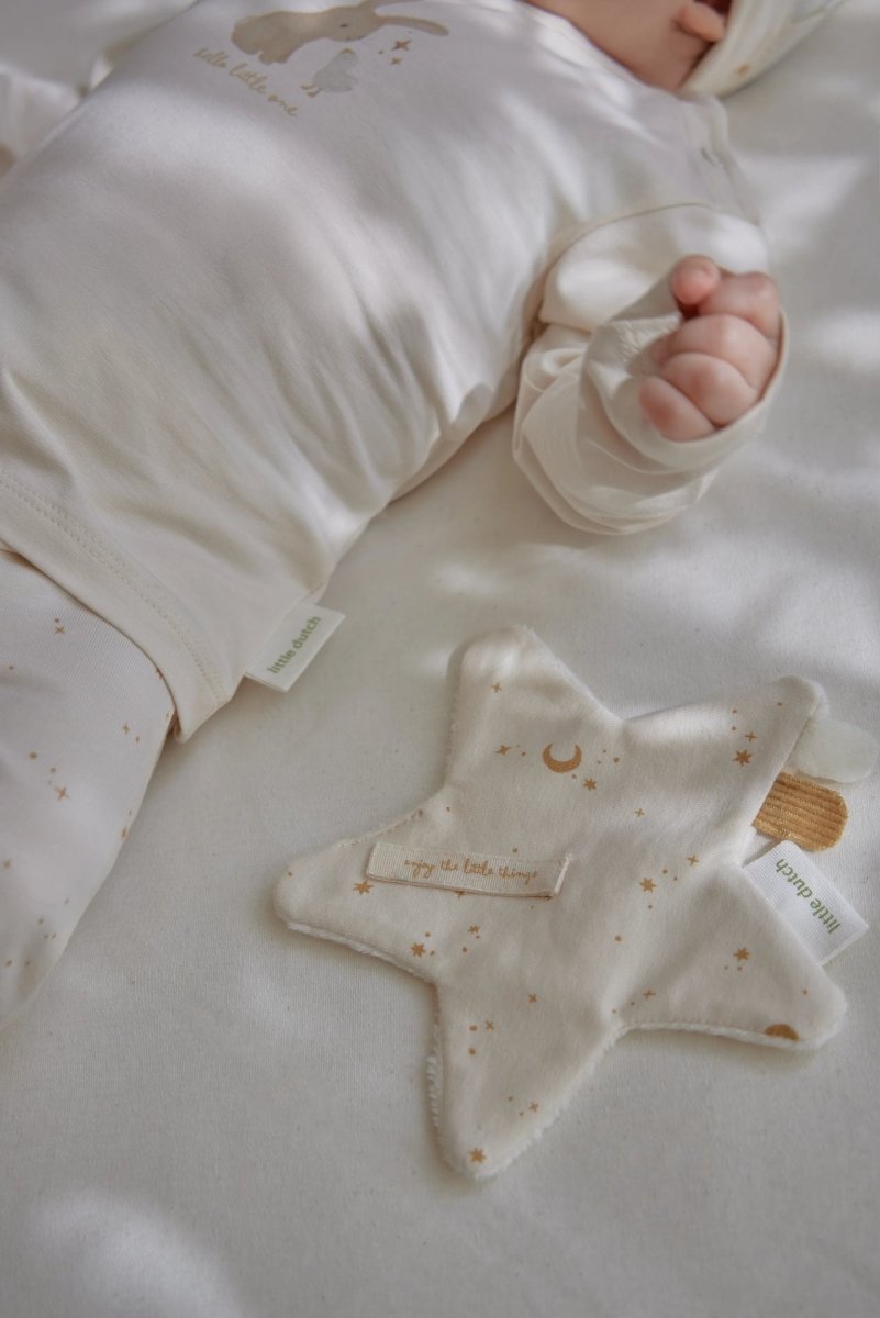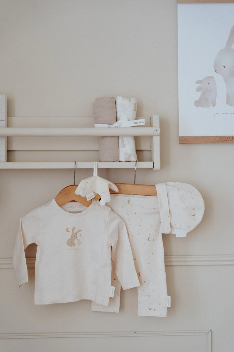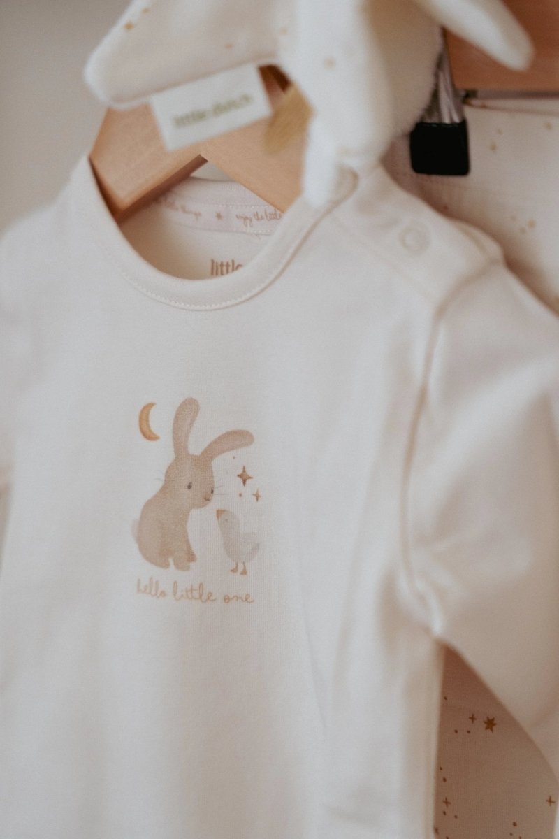 Vier de komst van een kleintje met deze liefdevolle newborn giftset, gevuld met zachte essentials voor de allereerste momentjes. De set wordt geleverd in een mooie geschenkdoos en bevat een schattig t-shirtje met Bunny & Goose print, een comfortabel broekje en bijpassend mutsje in het dromerige Moon & Stars dessin, én een zacht knuffeldoekje met maanprint dat uitnodigt tot knuffelen en rust.