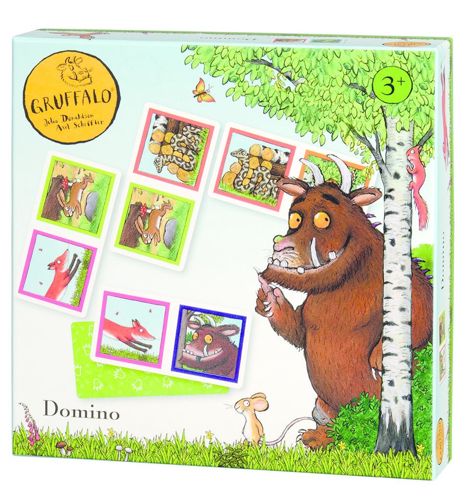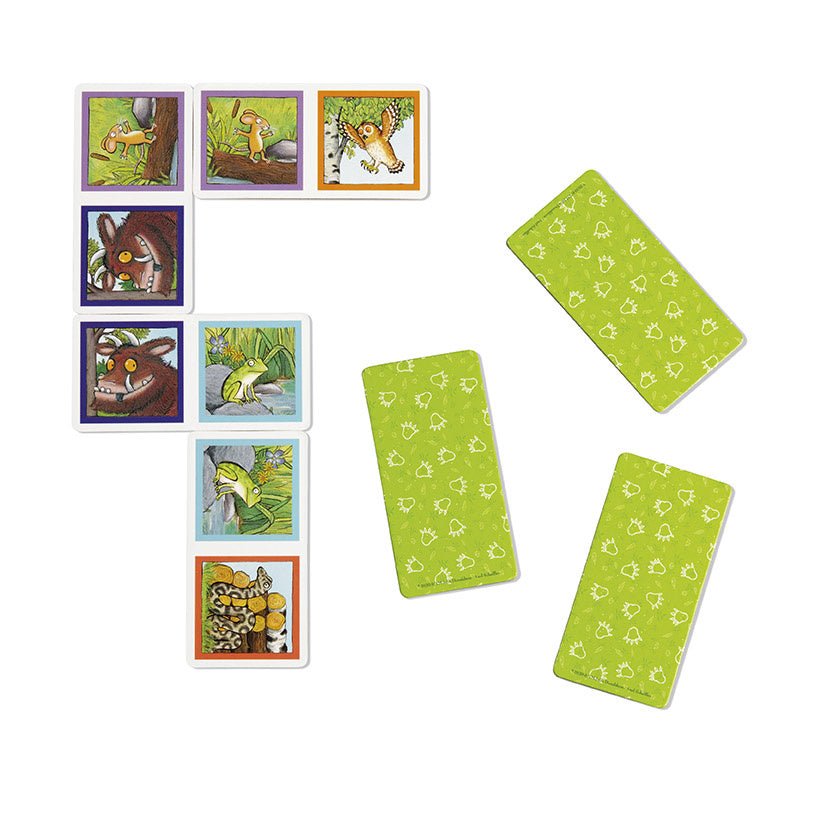 Voor dit kartonnen domino legspel zijn afbeeldingen gebruikt van de karakters uit het boek: “De Gruffalo”.. Dat maakt het voor kinderen heel herkenbaar en extra leuk. Probeer er zo veel mogelijk aan elkaar te leggen dan ontstaat er al snel een lange dominorij. Het spel bestaat uit 28 delen.