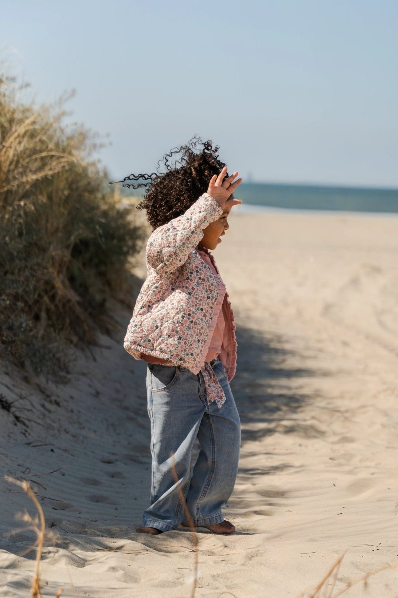 De elastische mouwopeningen en onderkant zorgen voor een comfortabele pasvorm, terwijl de ruche langs de hals en sluiting een lief en verfijnd detail toevoegt. Gemaakt van biologisch katoen en Oeko-Tex gecertificeerd – voor een veilige en verantwoorde keuze, elke dag weer. Een licht jasje dat je eenvoudig aantrekt over een blouse of jurkje, perfect voor kleine uitstapjes vol grote ontdekkingen.