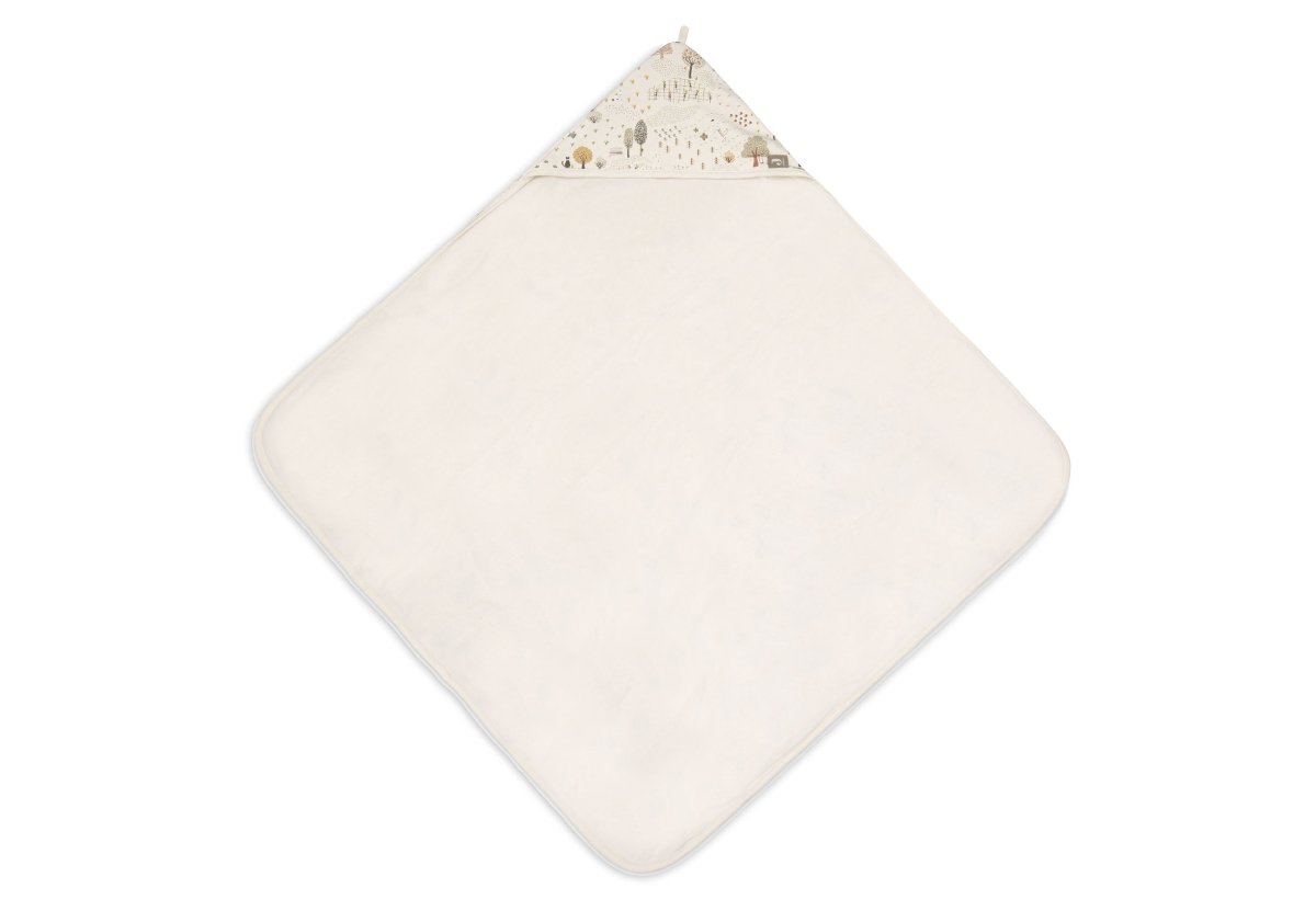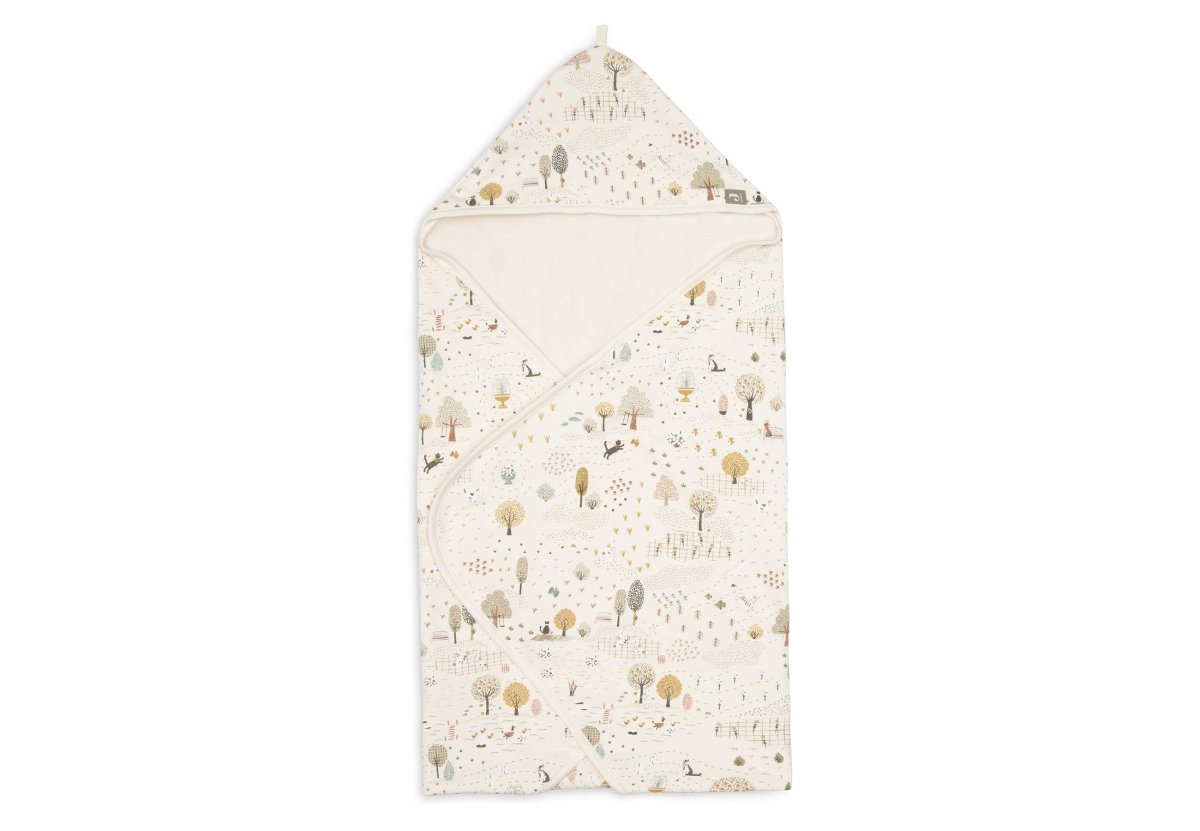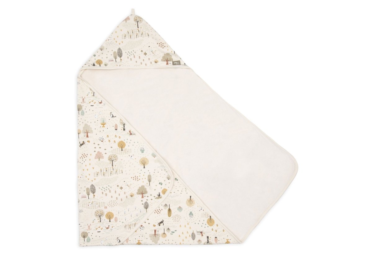 Deze heerlijke badcape is perfect voor het afdrogen van je kleintje na het badderen. De buitenkant is gemaakt van zachte jersey stof met een schattige all-over print uit de Tiny Park collectie, terwijl de binnenkant is gevoerd met super zachte terry badstof in de kleur oatmeal voor extra comfort. Met de 75x75 cm maat is deze badcape ideaal voor je kleintje, heerlijk om mee in te wikkelen na een lekker bad!