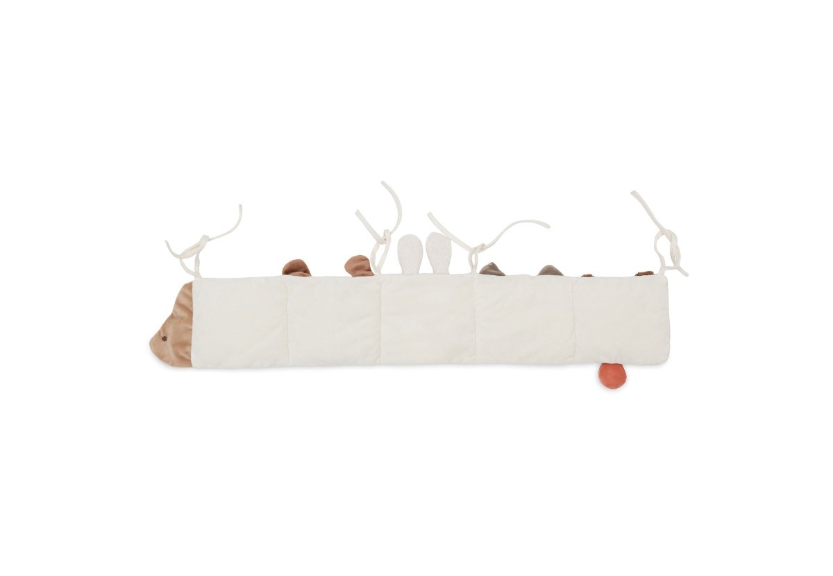 Deze Activiteiten Boxhanger is een schattig 5-delige slinger vol dierenvriendjes. Het boekje bevat vrolijke dieren zoals een hondje, katje en konijntje die je kleintje uren zullen vermaken. Het boekje maakt geluidjes en bevat knisperingen en touwtjes, waardoor de zintuigen van je baby gestimuleerd worden. Perfect voor in de box!