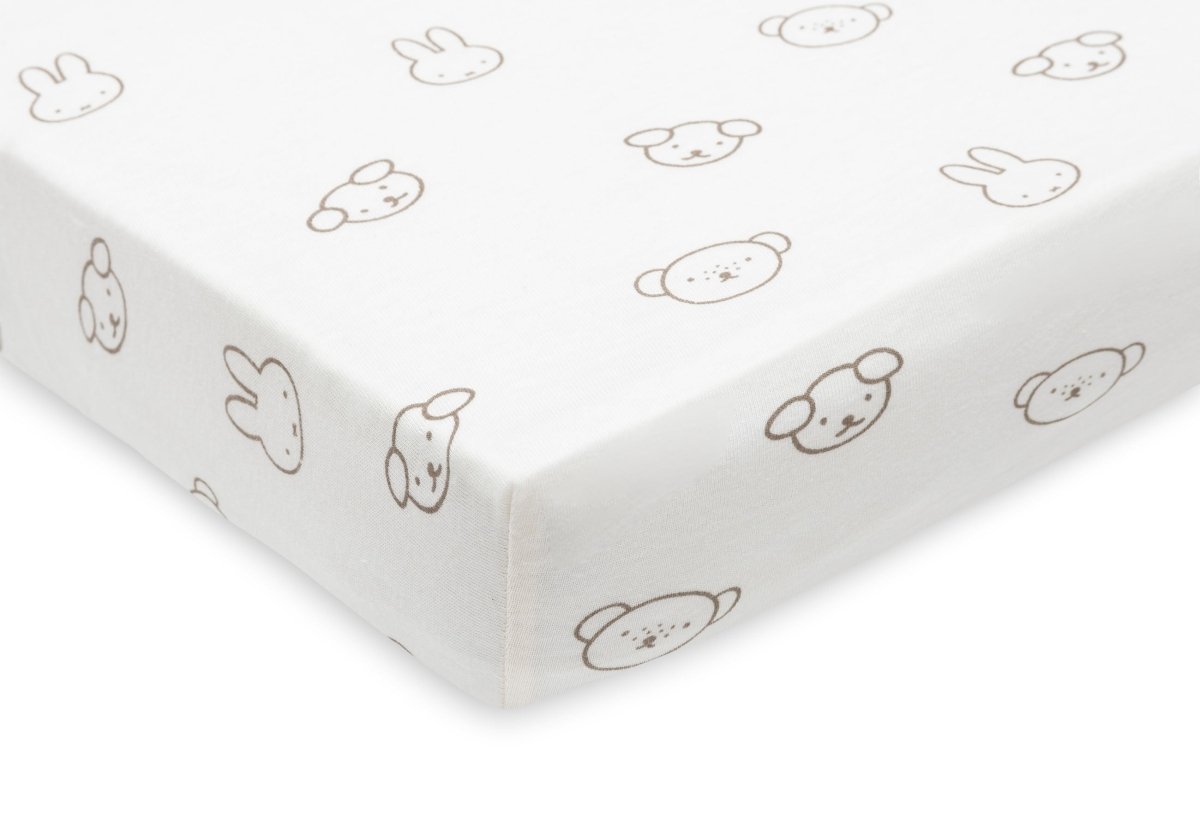 Laat je kleintje heerlijk slapen op dit zachte jersey hoeslaken met een lieve Miffy and Friends print. De rekbare stof zorgt voor een perfecte pasvorm en voelt heerlijk zacht aan op de huid. Nijntje en haar vriendjes brengen een speelse en knusse sfeer in de babykamer. Verkrijgbaar in 40/50x80/90 cm, 60x120 cm en 70/75x140/150 cm. De elastische hoeken zorgen ervoor dat het hoeslaken goed blijft zitten voor een comfortabel slaapmoment.