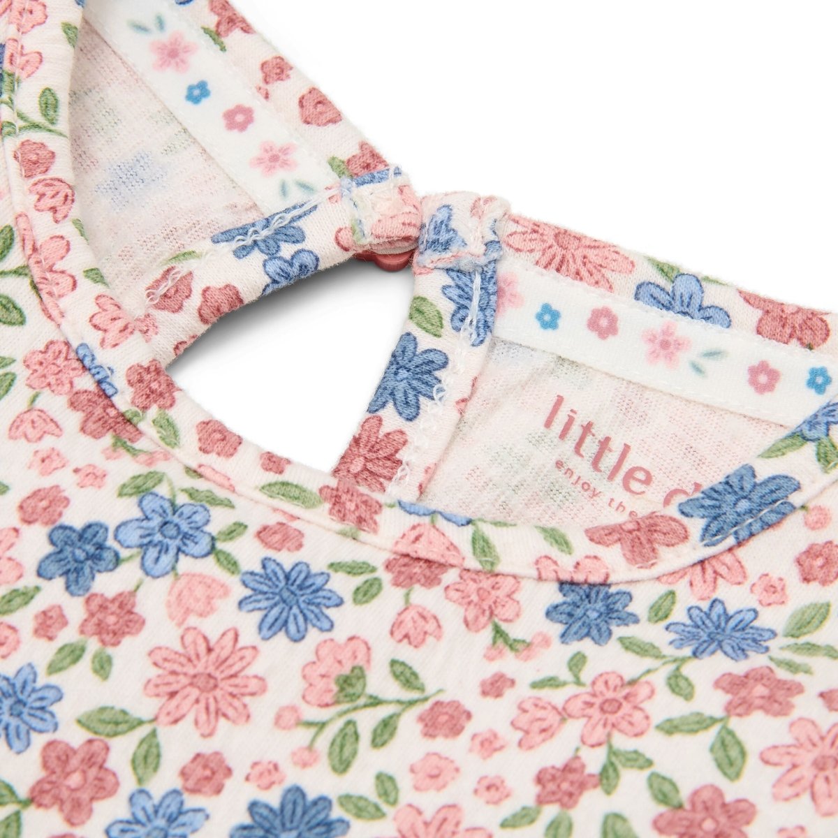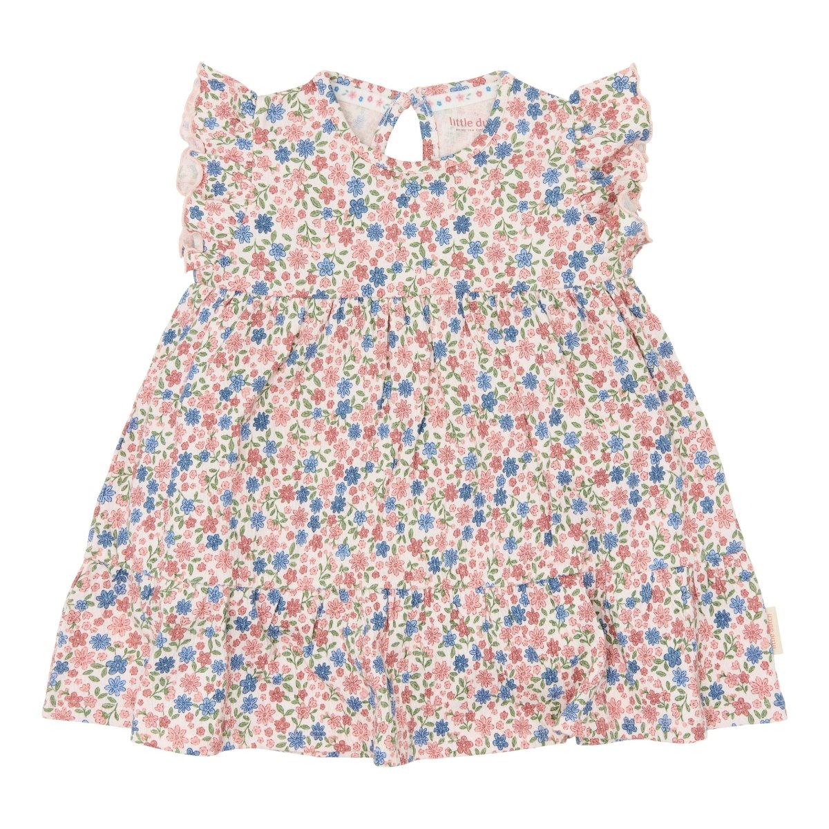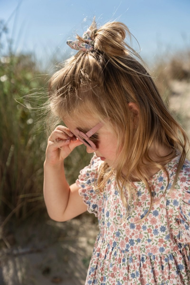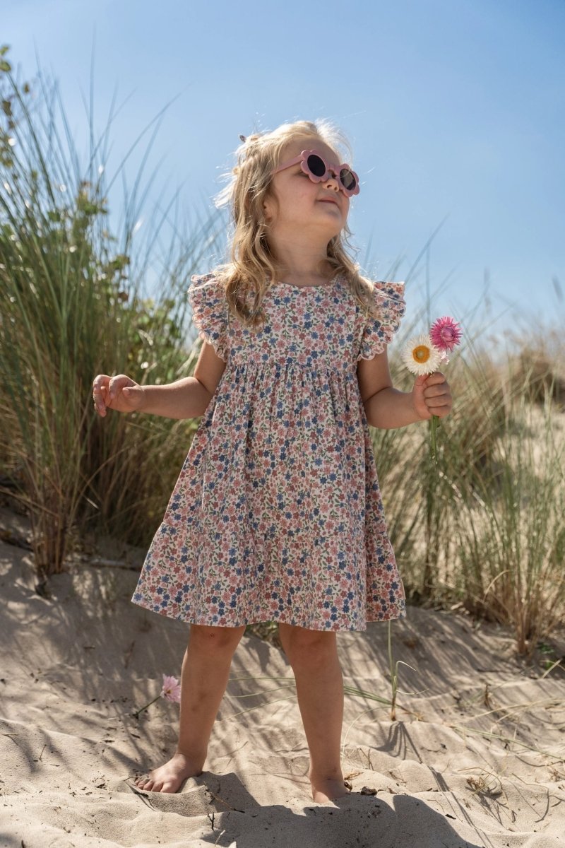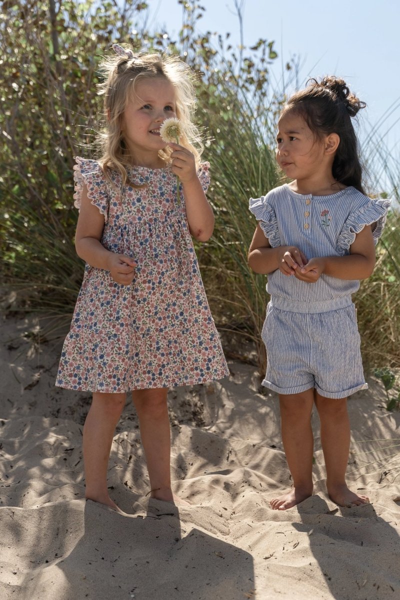 De ruches over de schouders geven het jurkje een speelse touch, terwijl de kleurrijke bloemenprint zorgt voor een frisse, zomerse uitstraling. Gemaakt van biologisch katoen en Oeko-Tex gecertificeerd – voor een veilige en verantwoorde keuze, elke dag weer. Een echte favoriet voor zonnige uitstapjes, blote voetjes in het gras en momenten om nooit te vergeten.