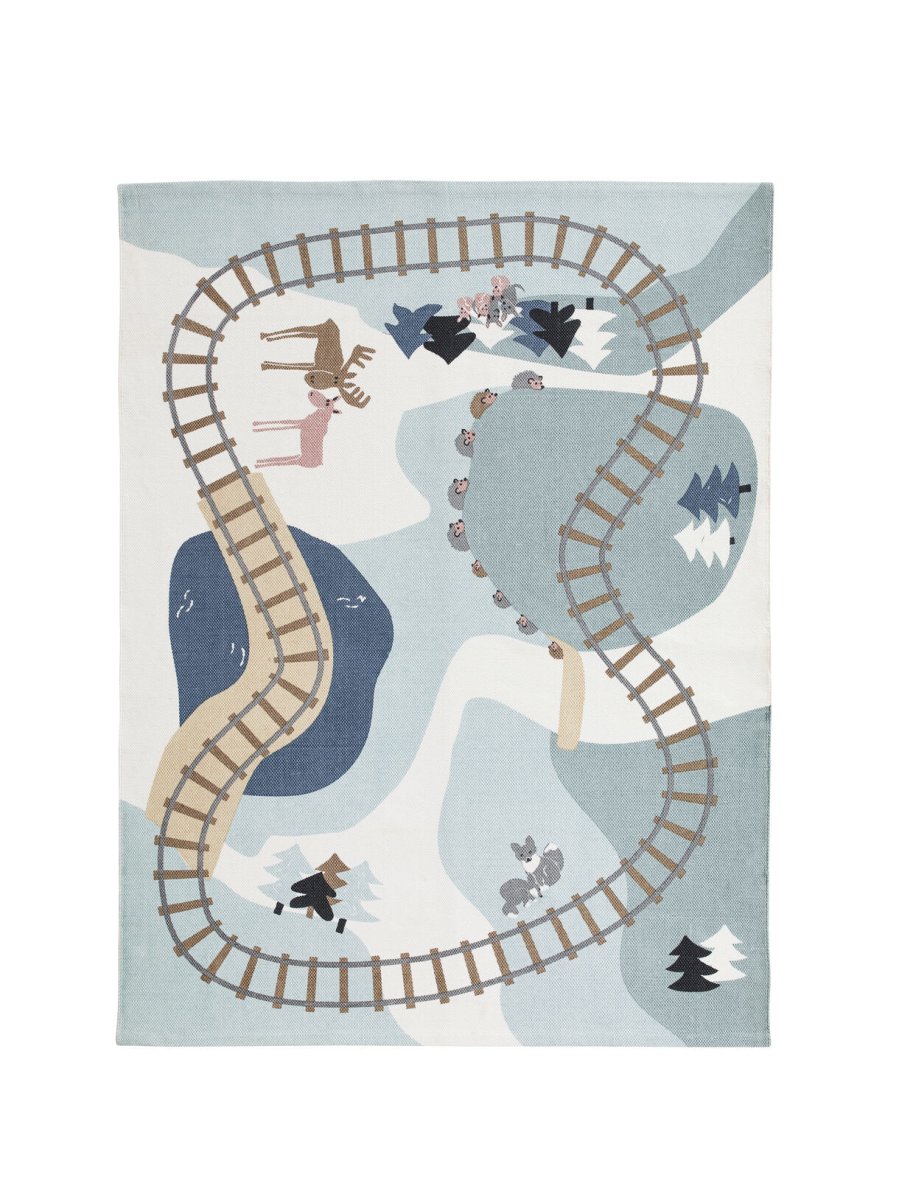 Stap in een EDVIN bosavontuur. Het bedrukte katoenen tapijt toont het land van de elanden, vossen, muizen en egels. Onze bloktreinen passen perfect bij het landschap. Rij met de dierentrein over het spoor door het mooie groene landschap. Neem een pauze aan de rand van het meer en laat alle EDVIN dieren samen spelen. Het tapijt is niet brandvertragend. Gemaakt van 100% katoen.