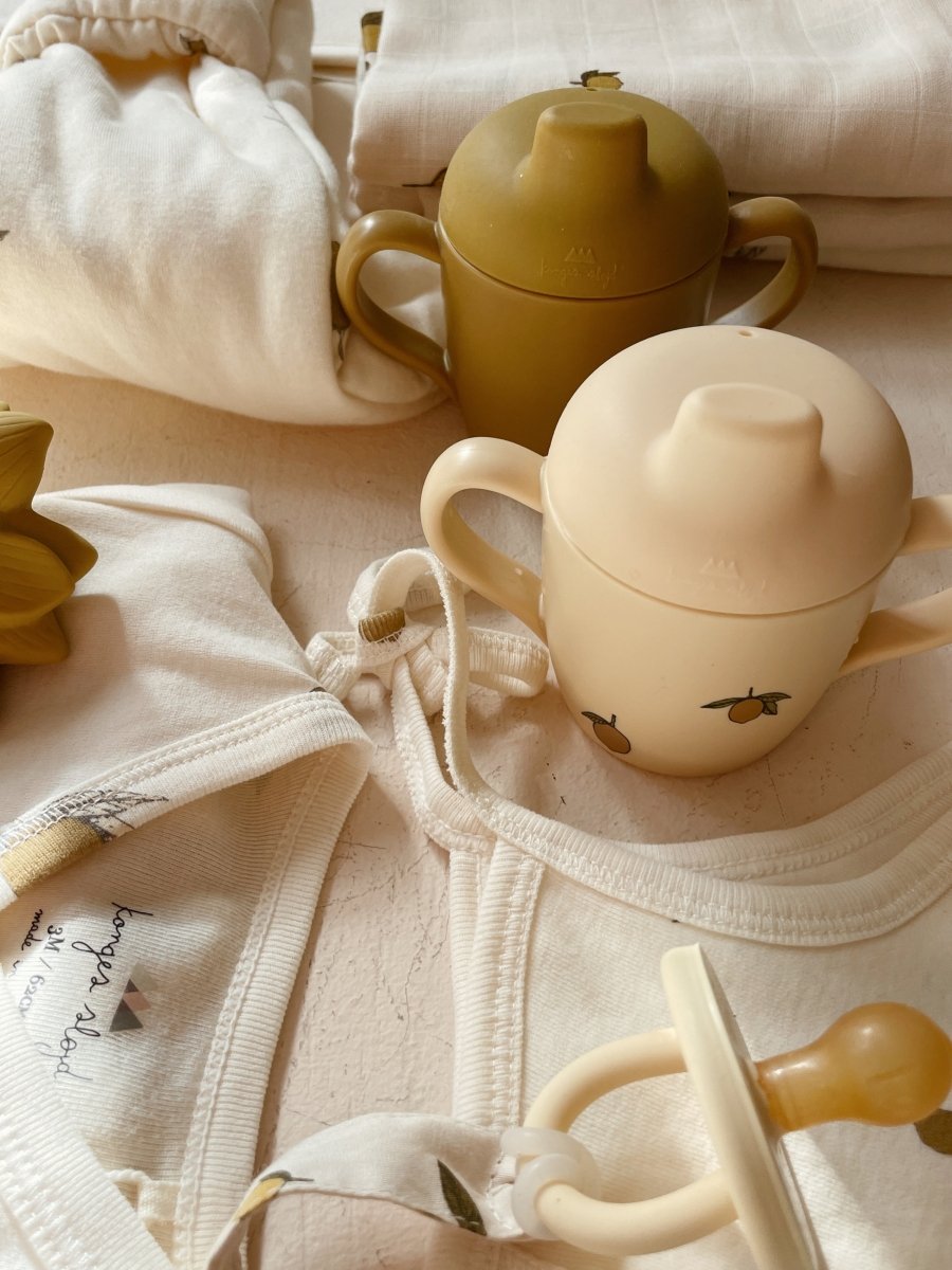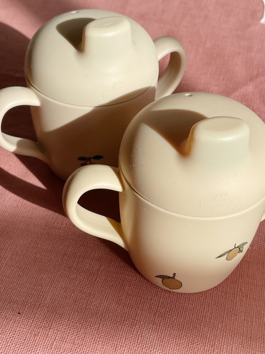 Beschrijving Reviews Over dit product Beker met twee praktische handgrepen voor kleine handjes. Ontworpen met een afneembaar deksel met een kleine tuit. De beker kan zonder deksel gebruikt worden naarmate het kind groeit. Goed voor het oefenen van de eerste slokjes.Materialen: 100 % siliconen / 100% PP AfmetingenDiameter: 5 cmHoogte: 8 cm Trustpilot