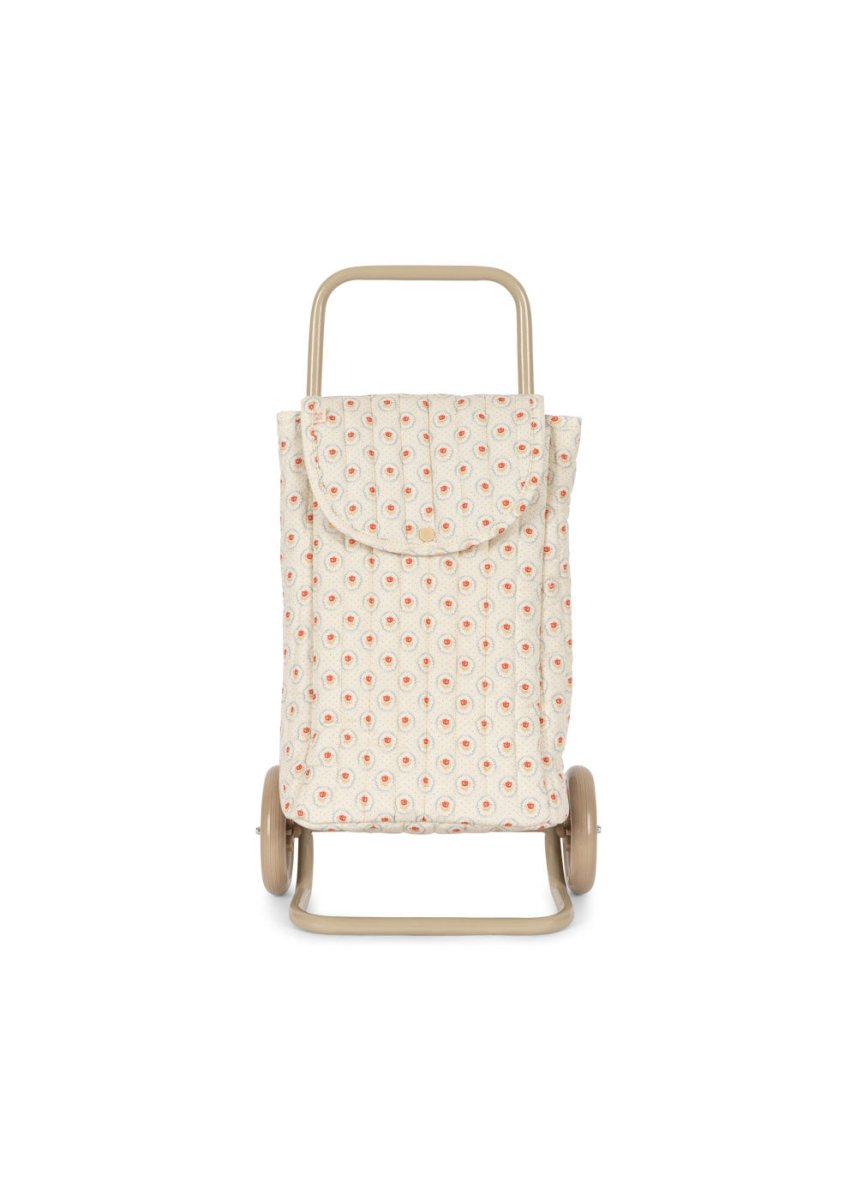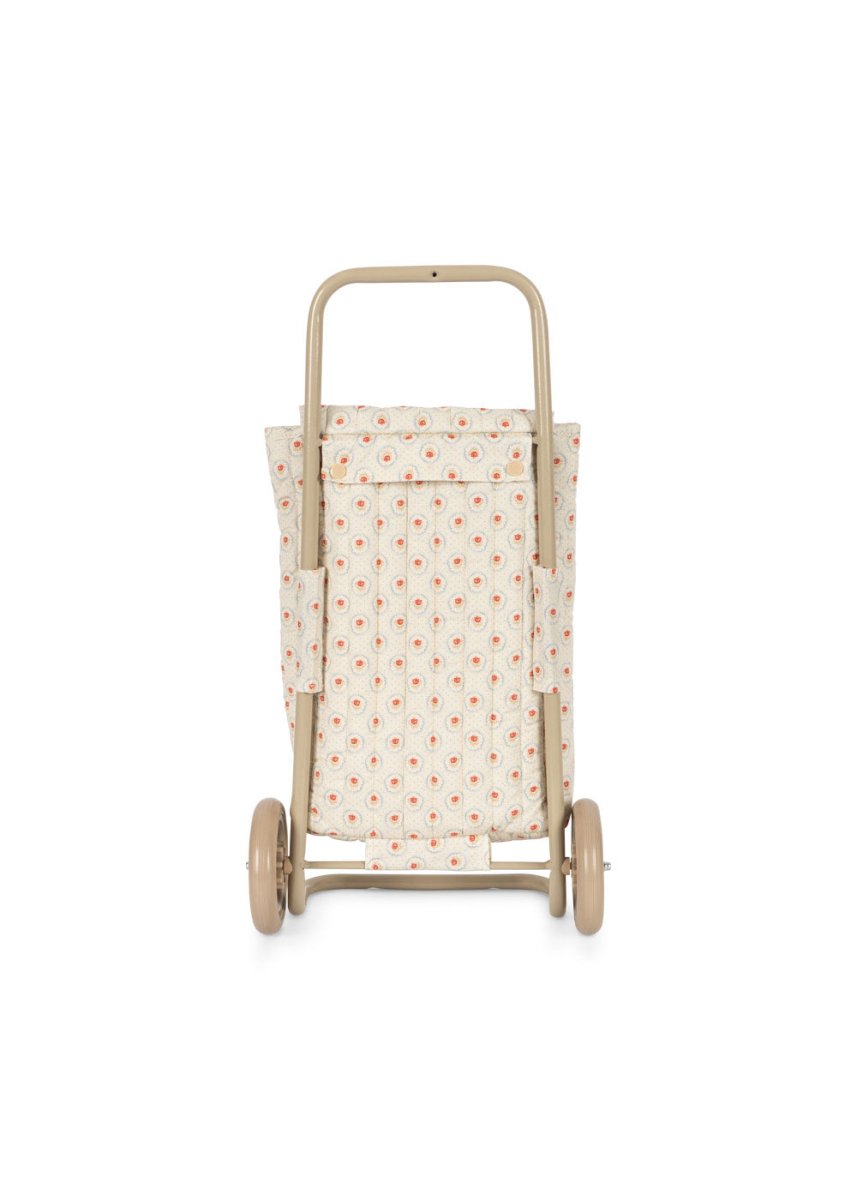 Beschrijving Reviews Over dit product Ruime kinderwagen-trolley, ideaal om al je favoriete spullen mee te nemen op avontuur. Voorzien van dubbele wielen, een ruime compartiment en een zacht handvat dat gemakkelijk te sturen is. Materiaal: Frame 100% ijzer, bekleding 100% katoen, vulling 100% polyester Kleur / Print: Mirage, witte stippen Afmetingen: H 59 x B 17 x D 29 cm Leeftijd: 3+ jaar Veiligheidswaarschuwing: Kleine onderdelen, niet geschikt voor kinderen onder 3 jaar CE-markering: Ja Trustpilot