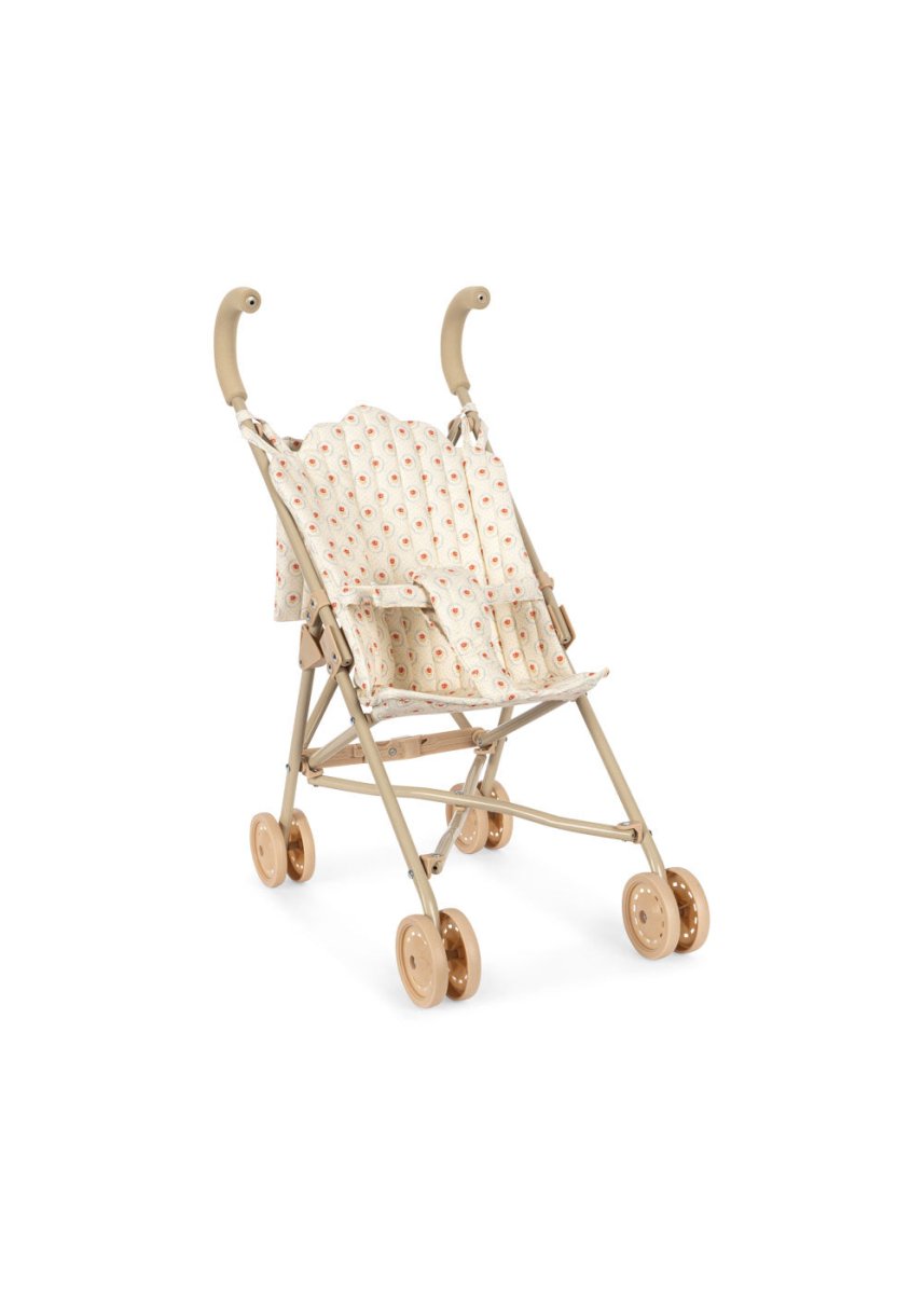 Praktische en stabiele poppenwagen, ontworpen met een harnas, draagtas en dubbele wielen op alle vier de poten voor extra veiligheid en stabiliteit. Voorzien van afneembare bekleding en zachte, veerkrachtige handgrepen voor comfortabel gebruik. Wordt volledig gemonteerd geleverd en is eenvoudig op te vouwen en op te bergen.