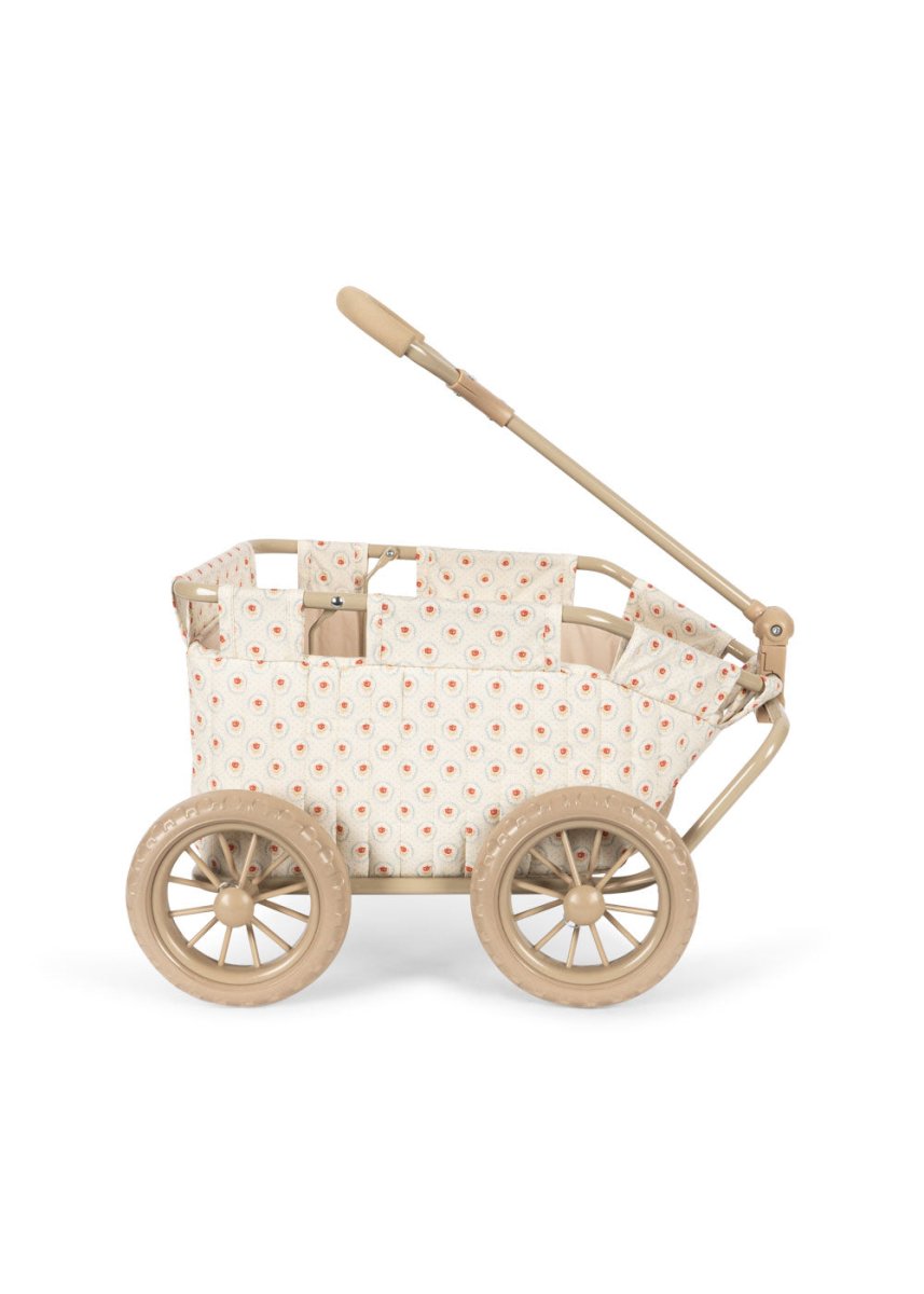 Beschrijving Reviews Over dit product Neem al je favoriete poppen en knuffels overal mee naartoe met deze stevige en comfortabele kinderwagenwagen. Voorzien van een metalen frame, zachte katoenen bekleding en soepel rollende wielen. Handvat is perfect afgestemd op kleine handjes. Materiaal: Frame 100% ijzer, bekleding 100% katoen, vulling 100% polyester, handvat EVA, wielen PP Kleur / Print: Mirage, witte stippen Afmetingen: H 80 x B 48 x D 35 cm Leeftijd: 3+ jaar Onderhoud: afnemen met een droge of licht vochtige doek CE-markering: Ja Trustpilot