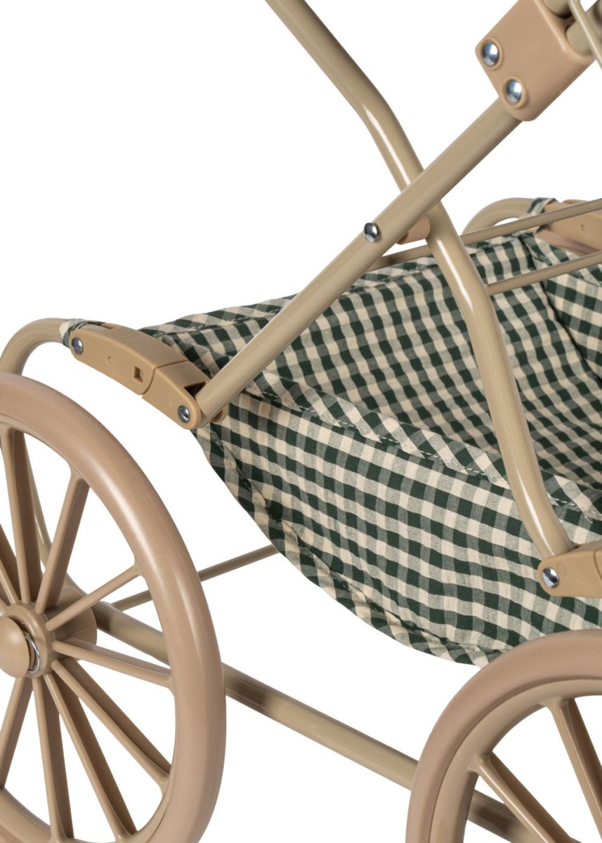 Een stabiele en charmante poppenwagen die kinderen helpt om hun fantasie en zorgzame spel te ontwikkelen, terwijl hun poppen veilig en comfortabel worden vervoerd.