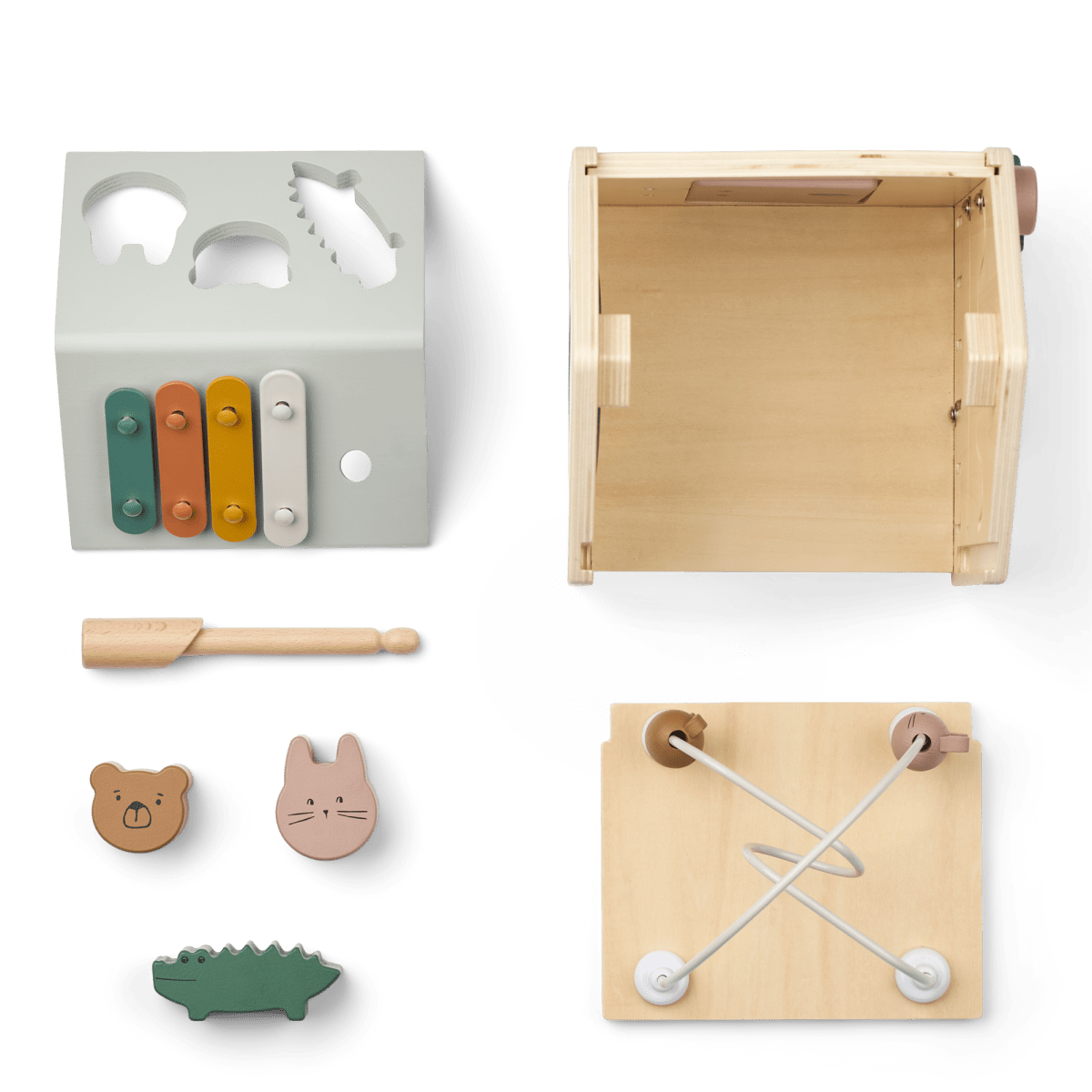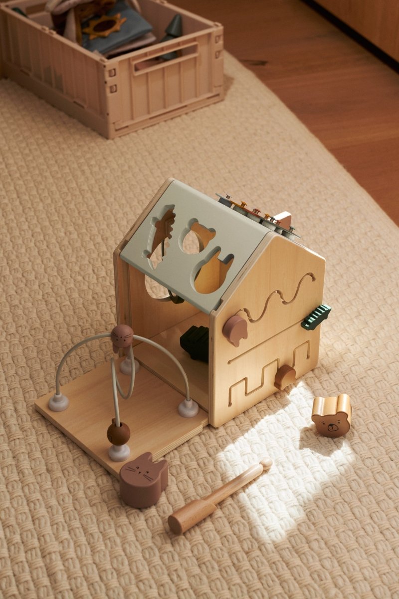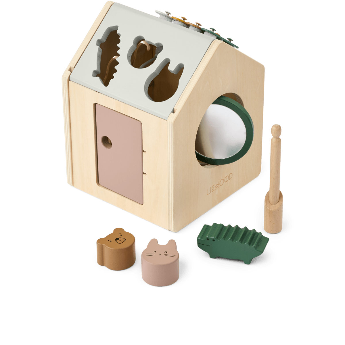 • Veelzijdig en uitnodigend ontwerp: Activiteitenkubus in de vorm van een schattig huis, boordevol leerzame speelfuncties.