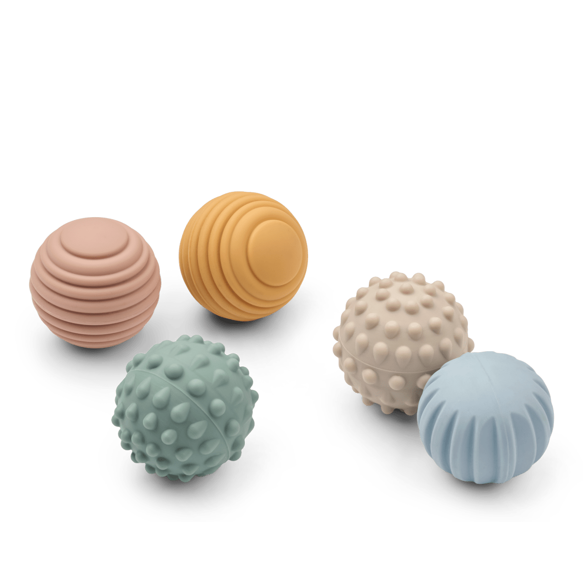 • Set van 5 zachte sensorische ballen: Elke bal heeft een unieke textuur om te ontdekken.