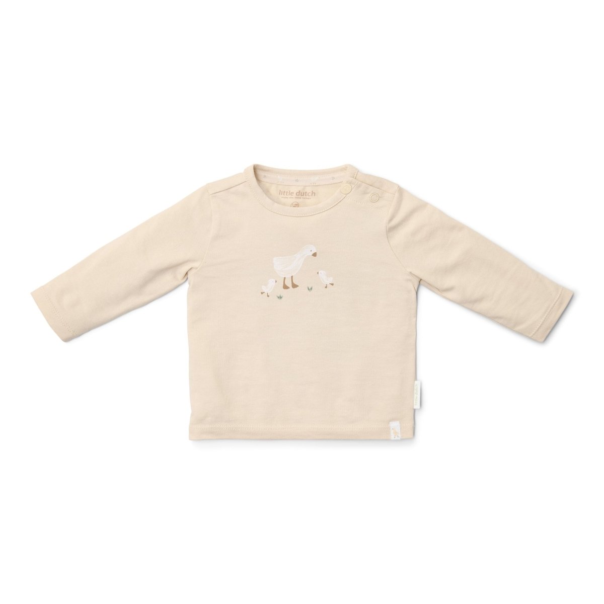 Dit lange mouw T-shirt in een zachte zandkleur is perfect voor dagelijks gebruik. Het comfortabele materiaal voelt zacht aan op de huid en zorgt voor een goede pasvorm dankzij de rekbare kwaliteit. De subtiele Little Goose print op de borst geeft het T-shirt een speels detail.