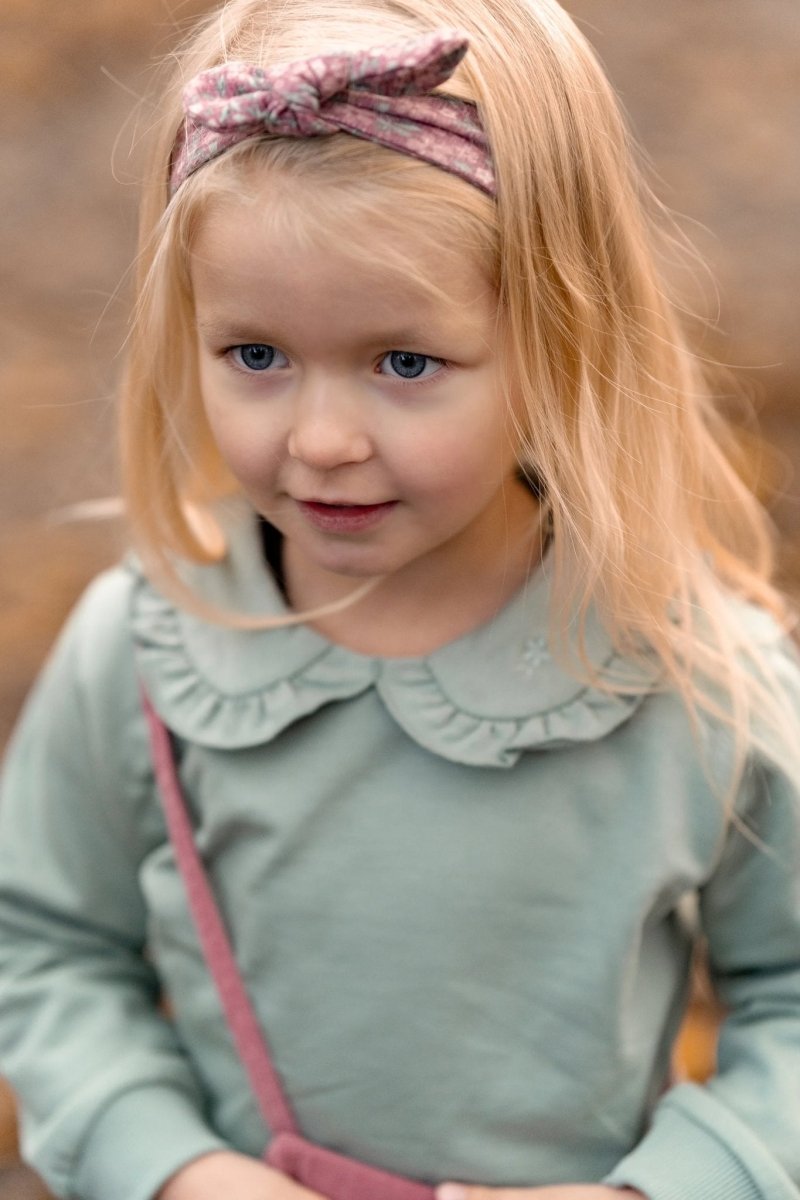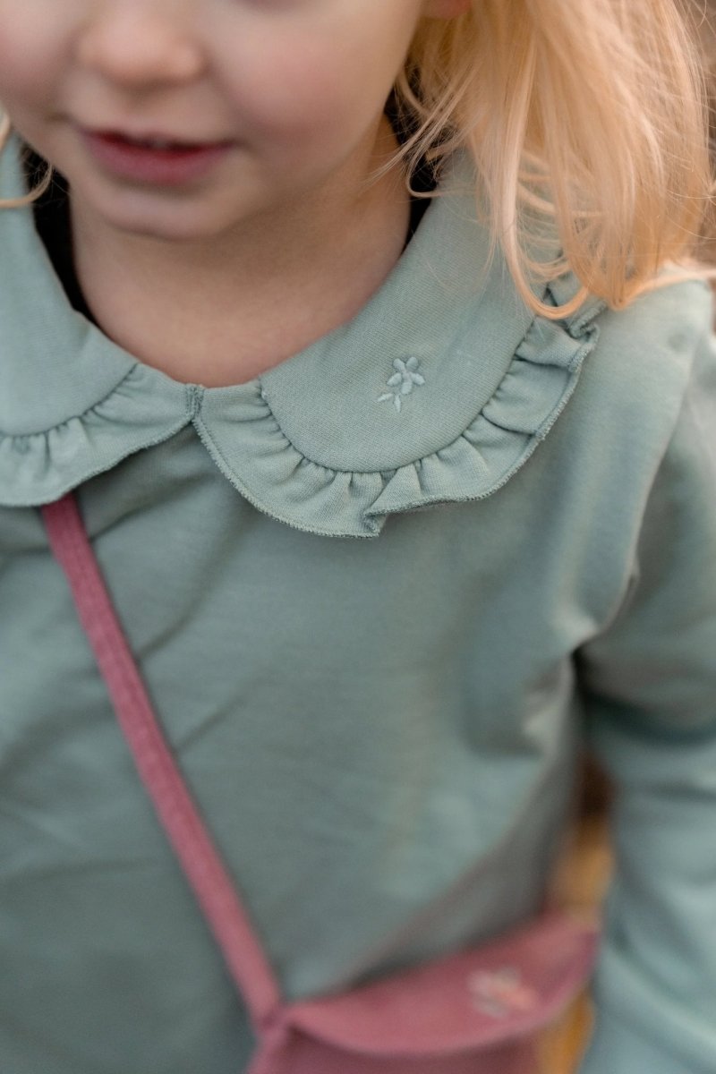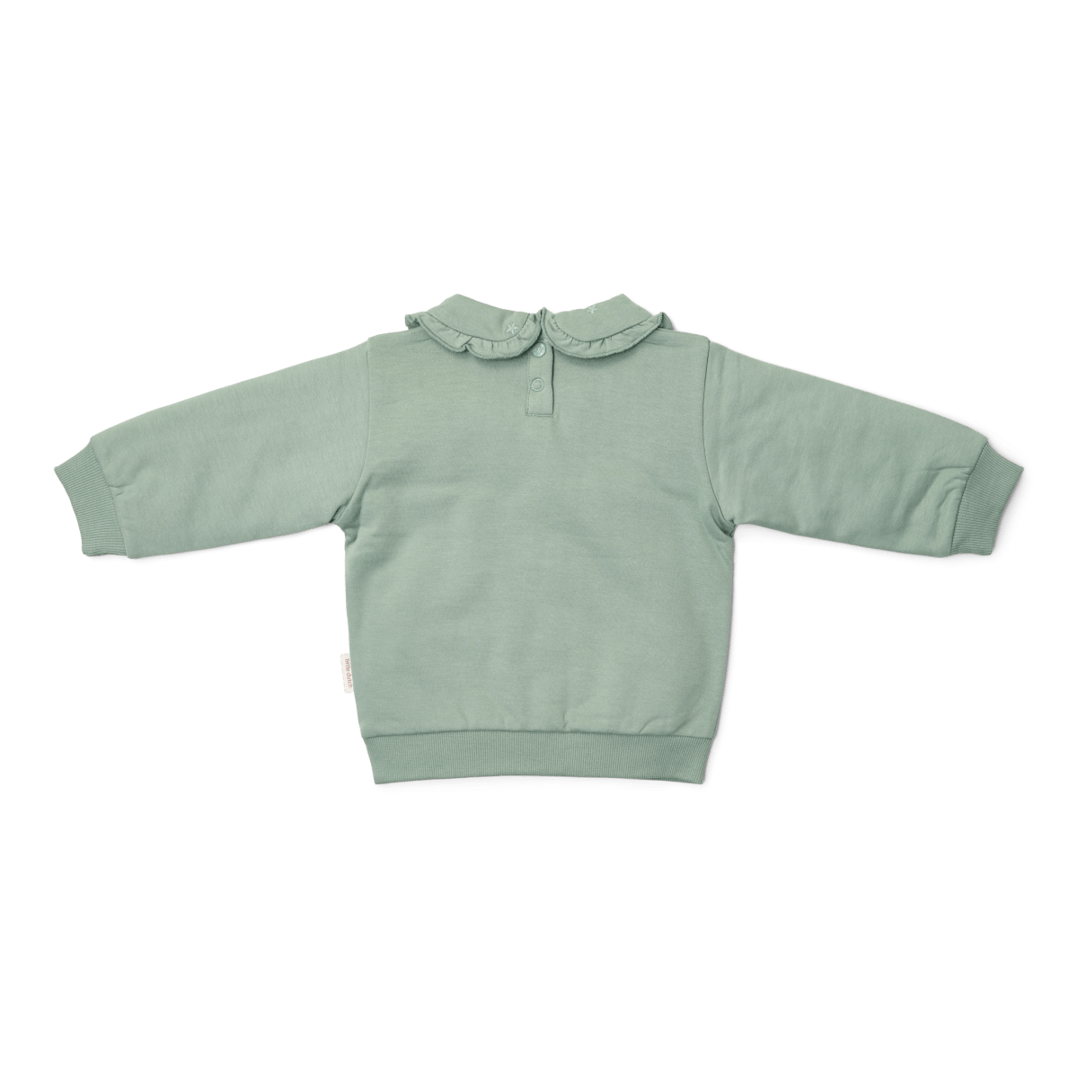 Warme en zachte sweater, kraag met een all over borduursel en ruffle afwerking, gemaakt van biologisch katoen, Oekotex gecertificeerd. 100% biologisch katoen.