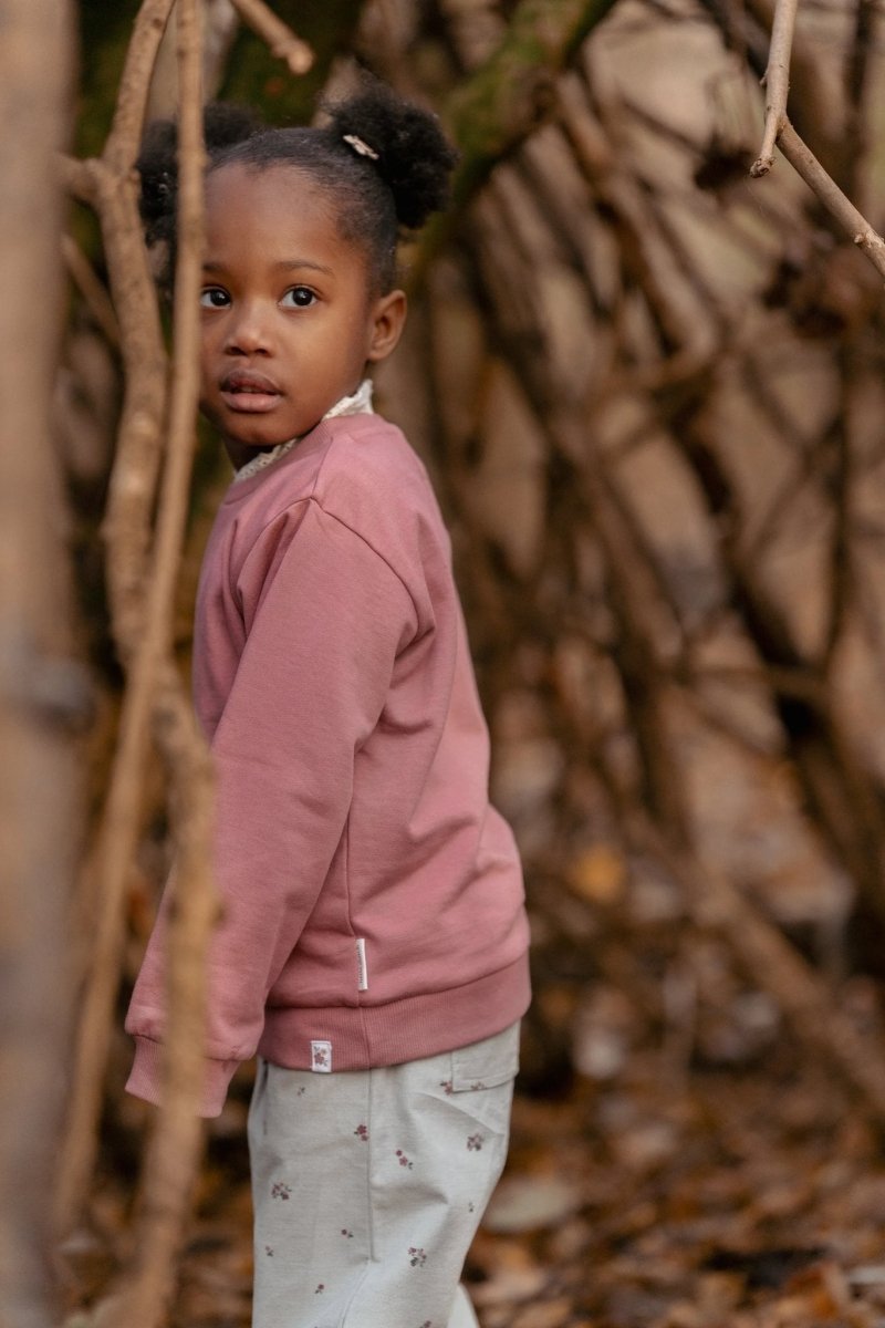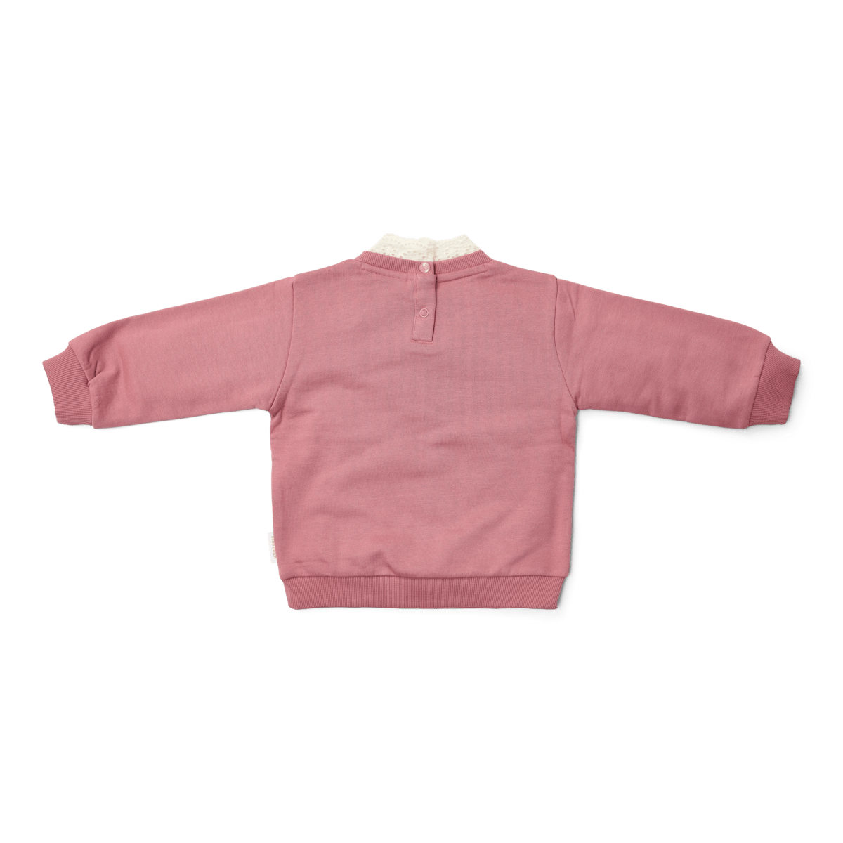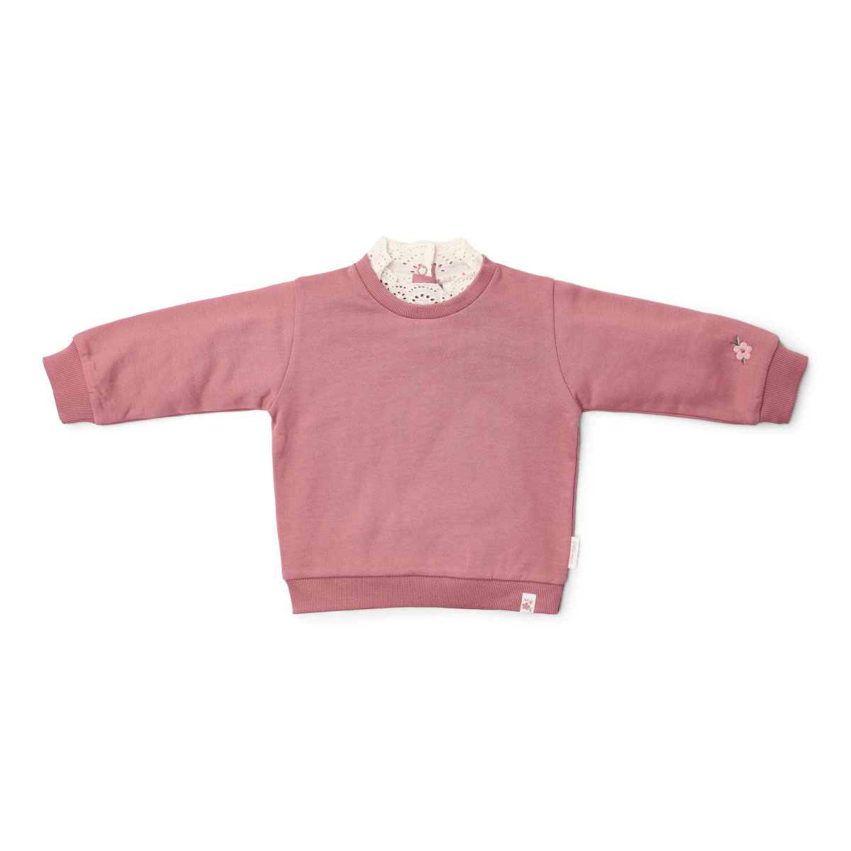 Warme en zachte sweater, contrasteerende broderie kraag, bloemenborduursel, gemaakt van organisch katoen, Oekotex gecertificeerd. 100% biologisch katoen.
