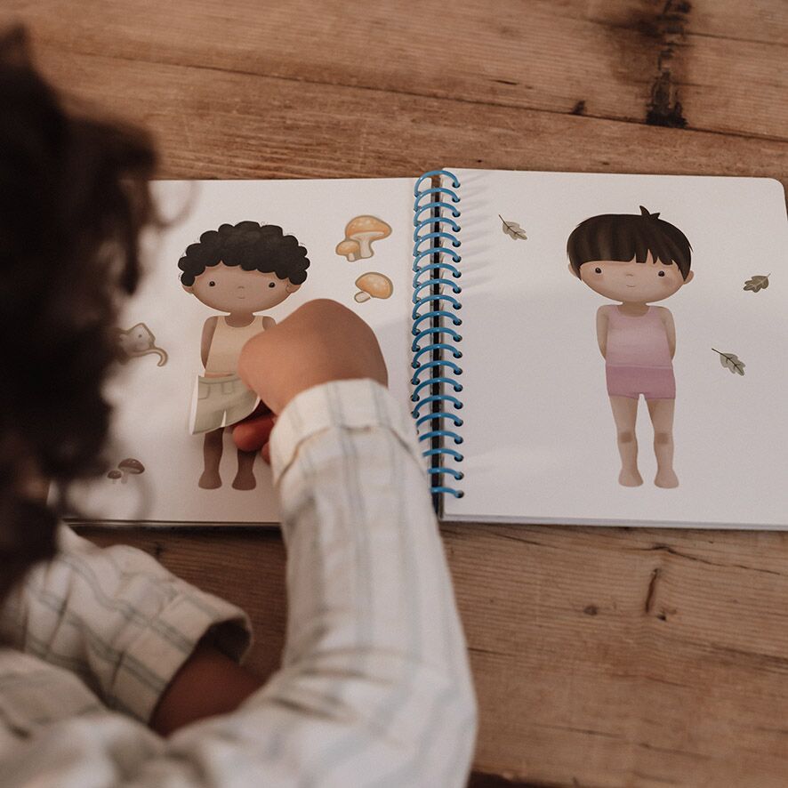 Wat trek jij aan vandaag? Met dit Jim & Friends Forest Friends aankleedboek bepaal jij de kleding van Jim en zijn vrienden tijdens hun avonturen in het bos. Het boekje bevat 24 pagina's met afbeeldingen van Jim en zijn vriendjes, evenals 12 pagina's met stickers van stoere uniformen en accessoires. Of je nu wilt dat Jim een stoere boswachter wordt of zijn vriendje een avontuurlijke ontdekkingsreiziger, jij hebt het voor het zeggen. Het boek is gemaakt van stevig karton met herkenbare Little Dutch ontwerpen en kleuren en heeft een handige ringband. Een ideale activiteit voor thuis en onderweg!
