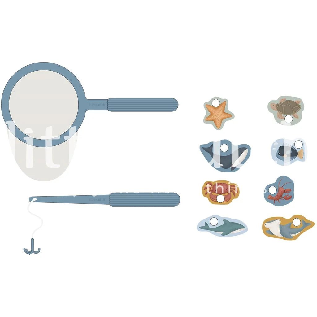 Vang jij de meeste onderwaterdieren met dit leuke vis spel van Little Dutch? Dit spel stimuleert de fijne motoriek en de concentratie van kinderen. De set bestaat uit een hengel en een schepnet en 8 figuren om of te vissen. De handvatten van de hengel en het schepnet kunnen losgeschroefd worden, om makkelijker te kunnen opbergen. De set is verpakt in een full colour doos en geschikt voor kinderen vanaf 36 maanden.