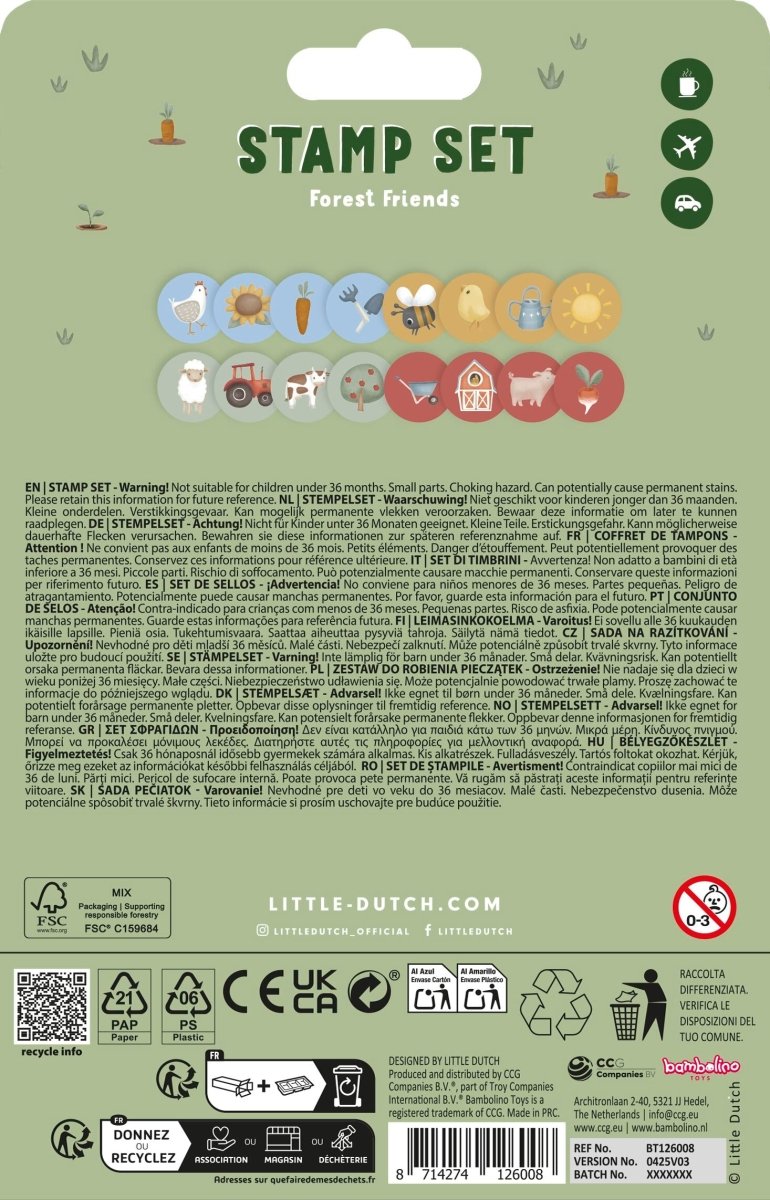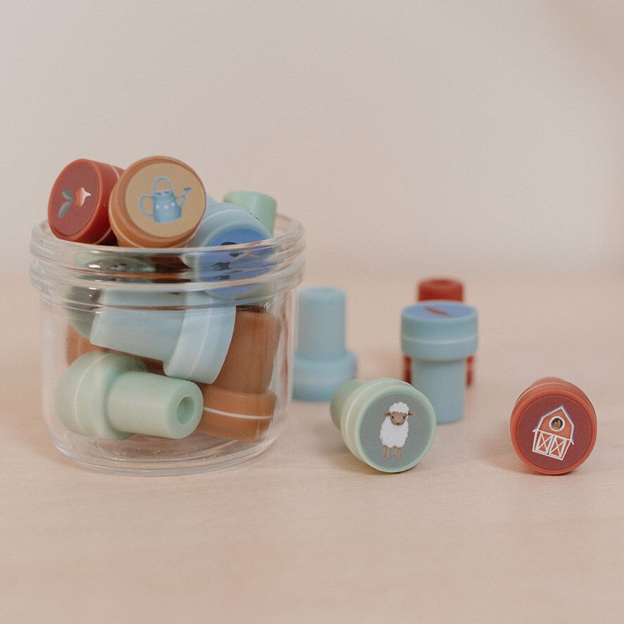 Breng de boerderij tot leven met de zelfinkende Little Farm stempels van Little Dutch! Deze set bevat verschillende stempels met afbeeldingen van schattige boerderijdieren zoals een koe, schaap en kip. Met deze stempels kunnen kinderen hun eigen boerderij avonturen creëren op papier of kleurplaten. De stempels zijn zelfinkend, dus er is geen extra inkt nodig. Een leuke en eenvoudige manier om de creativiteit te stimuleren en de fijne motoriek te ontwikkelen. De set bevat ook een handige opbergdoos.