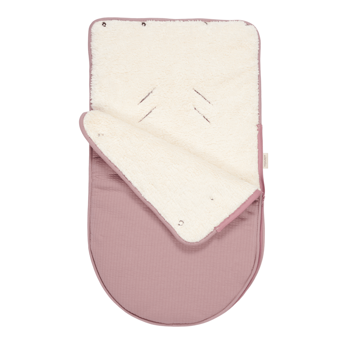 De Little Dutch voetenzak is geschikt voor 0+ autostoeltjes. De binnenkant is voorzien van heerlijk zachte teddystof om de voetjes van je kindje lekker warm te houden. De voetenzak heeft gordelgaten zodat je hem in een autostoeltje kunt gebruiken. De zijkant van de voetenzak is voorzien van ritsen, zodat je de voeten van je kindje gemakkelijk in de voetenzak kunt stoppen. Gebruik de drukknopen om je baby zoveel in te stoppen als nodig is. Om je autostoel helemaal in Little Dutch stijl af te maken, kun je de voetenzak combineren met de bijpassende autostoelhoes en zonnekap. Deze uit de Pure Mauve collectie heeft een prachtige zachtroze kleur. Het product heeft een TOG-waarde van 9,4.