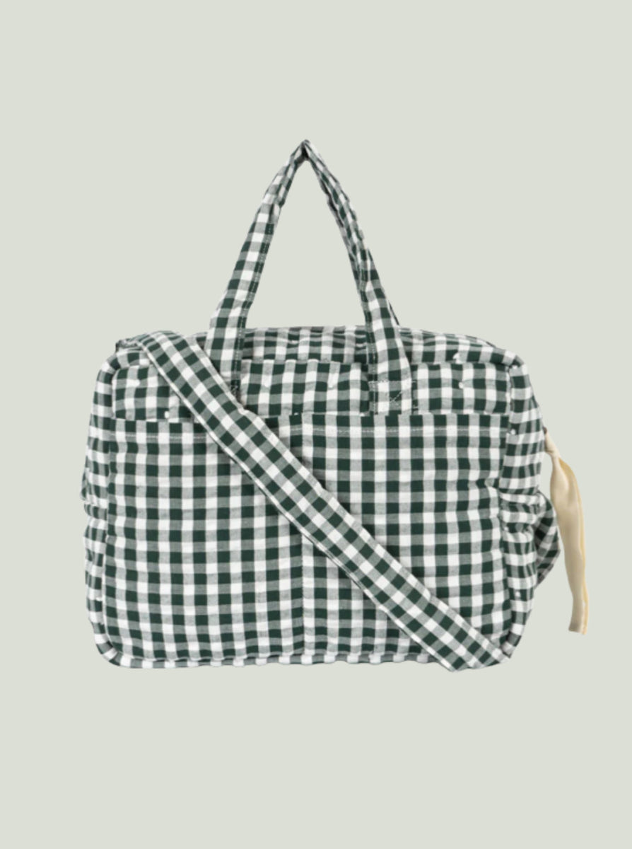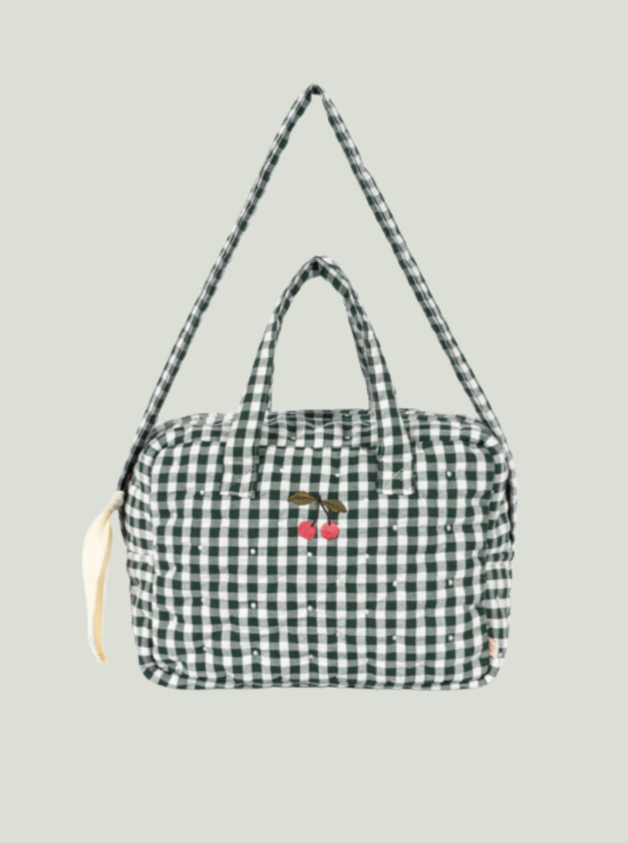 Praktische luiertas voor poppen, gemaakt van 100% biologisch katoen. Voorzien van een groot buitenvak, verstelbare schouderriem en handvat voor eenvoudig dragen. Sluit veilig met een ritssluiting – ideaal voor ouders van kleine poppen.