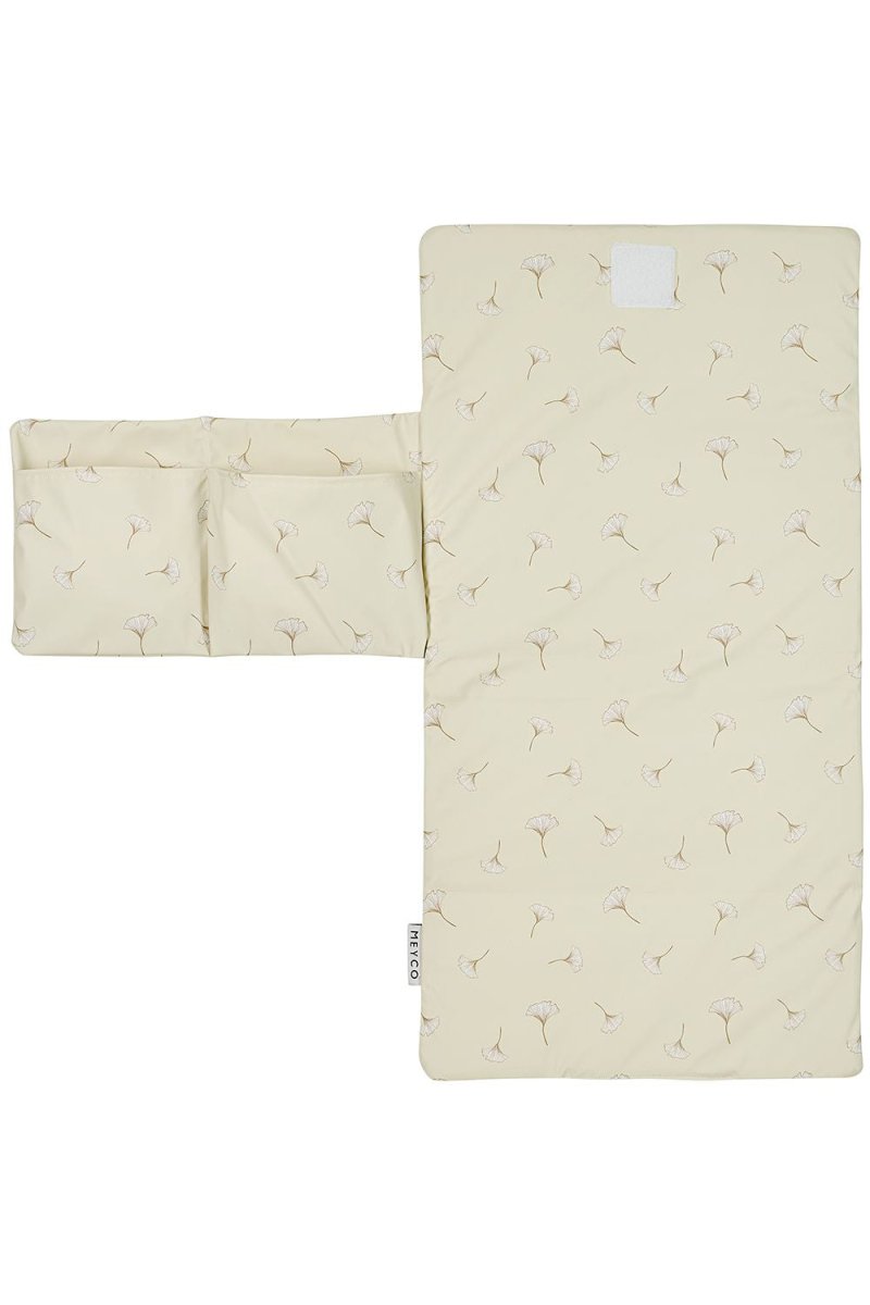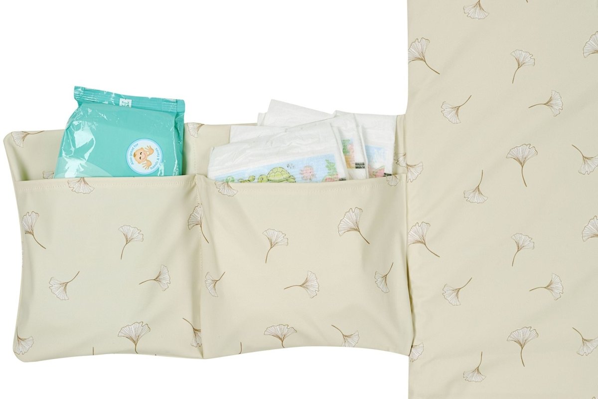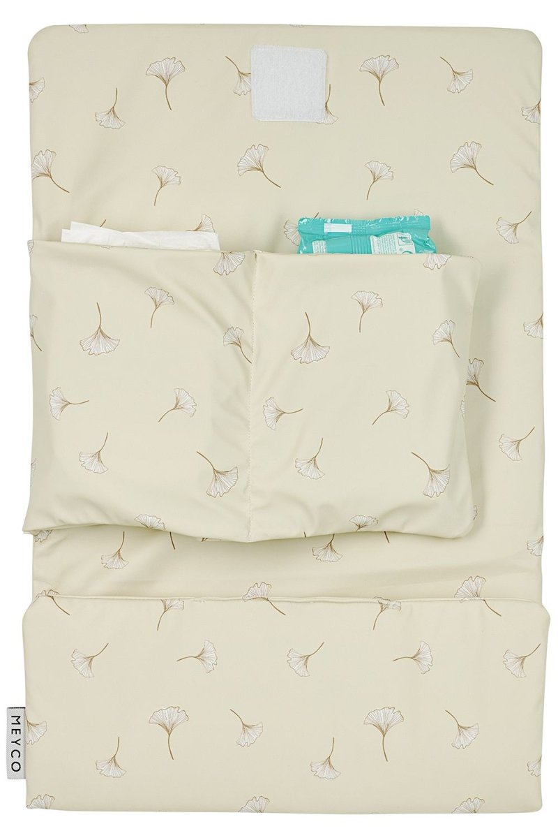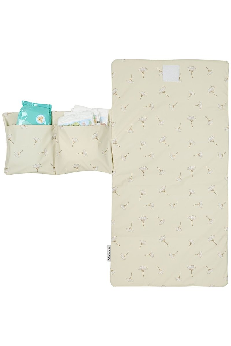 Het verschoonmatje heeft een prachtig, rustig printje met ginkgo bladeren. Zo ga je stijlvol op pad met je kleine avonturier!