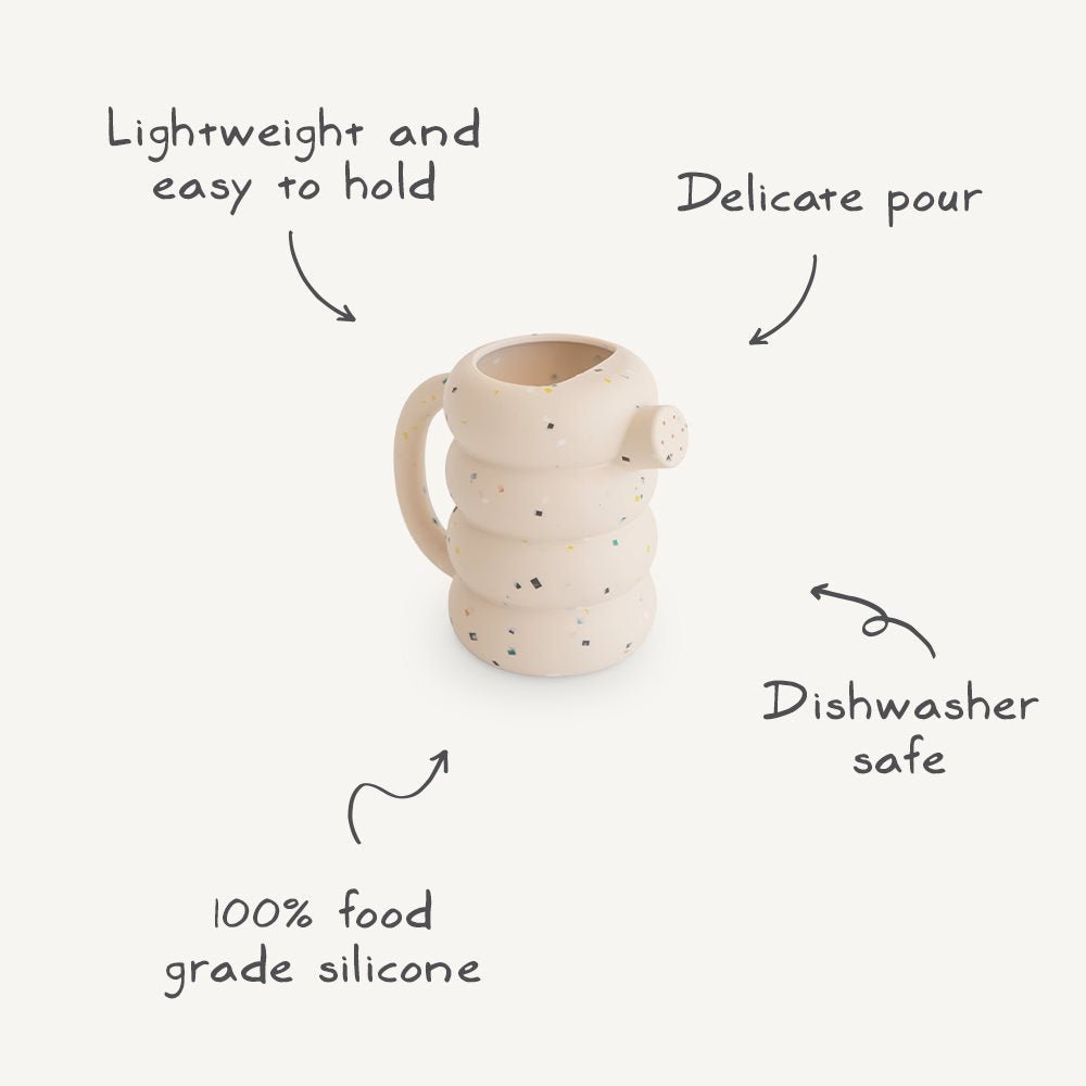 Maak badtijd en buitenspelen nog leuker met de Mushie siliconen gieter.