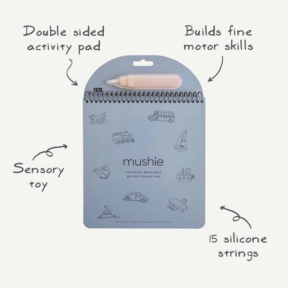 Mushie - Herbruikbaar Water Kleurboek Voertuigen