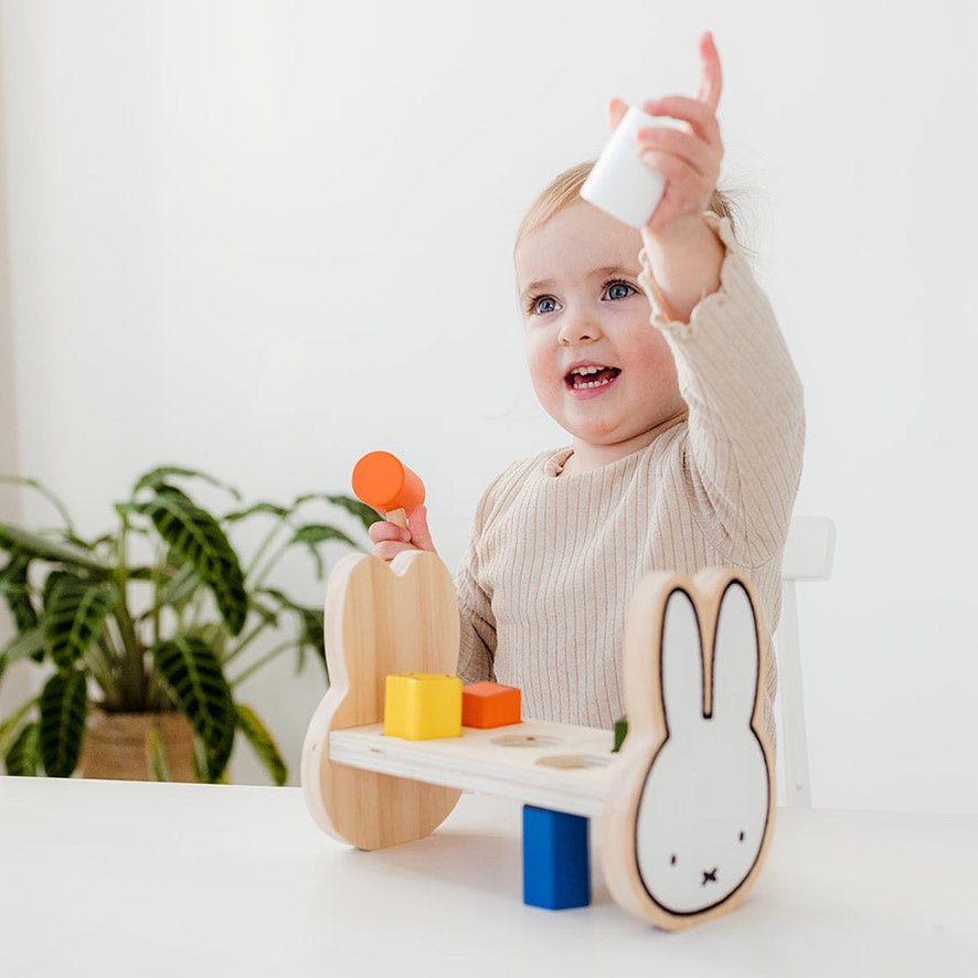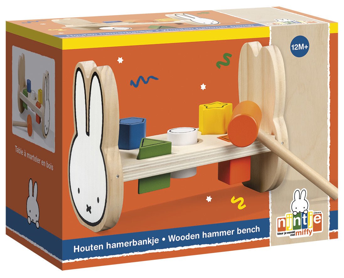 Je kleintje zal zich een ware timmerman/vrouw voelen met dit Nijntje houten hamerbankje van Bambolino Toys! De hamerbank is uitgevoerd in vrolijke kleurtjes met mooie illustraties van Nijntje.