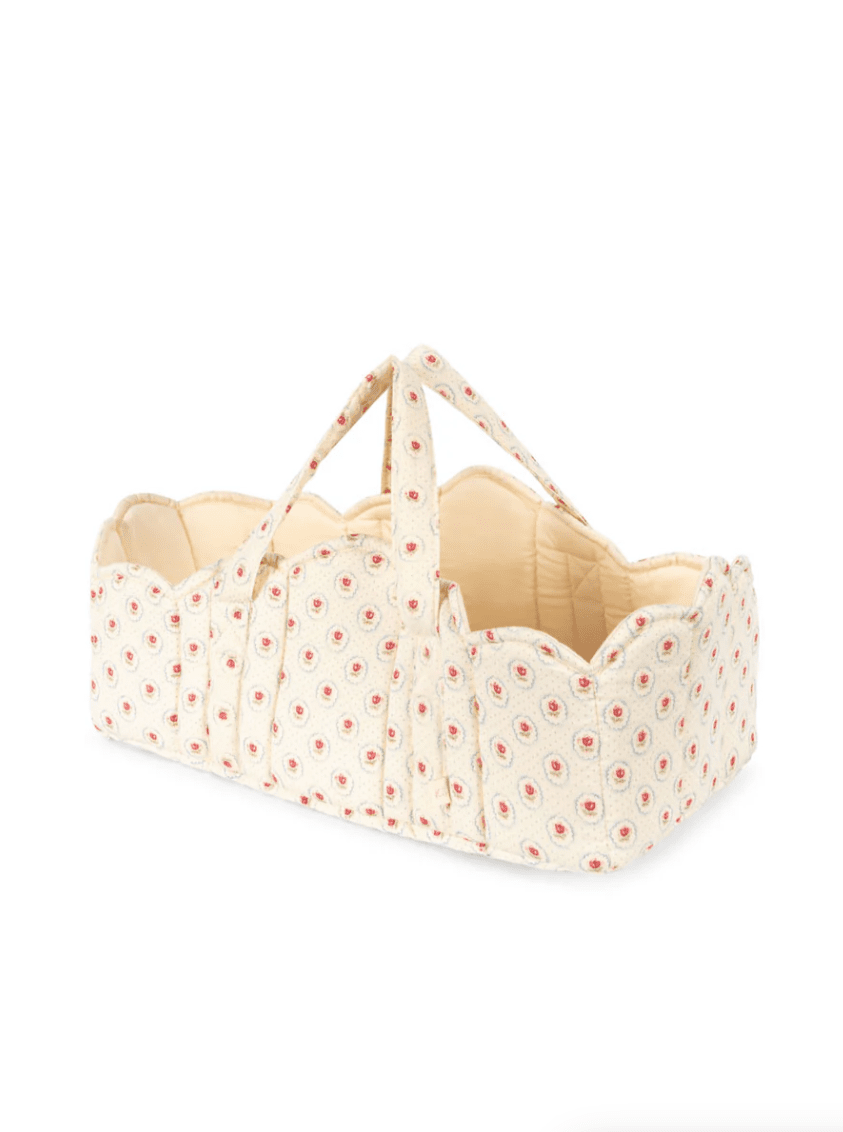 De Konges Sløjd Mirage poppenreiswieg is perfect voor kleine poppenouders die hun pop overal comfortabel mee naartoe willen nemen. Dankzij de zachte draagbanden en de gevoerde afwerking ligt de pop veilig en geborgen. De decoratieve biezen en schulpranden geven de wieg een stijlvolle en herkenbare uitstraling.