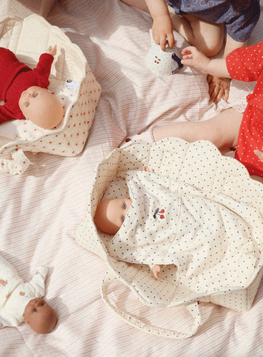 Een prachtige en comfortabele poppenwieg die uitnodigt tot fantasierijk en zorgzaam spel.