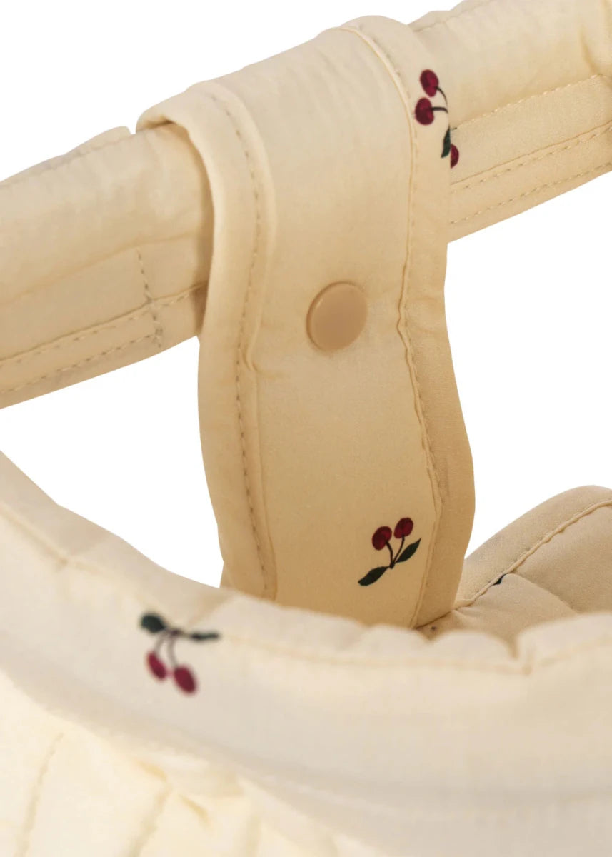 Het Poppenzitje Fiets Cherry is een schattig en handig fietszitje waarmee kinderen hun favoriete poppen mee kunnen nemen op avontuurlijke ritjes. Het zitje is geschikt voor loopfietsen en eenvoudig te bevestigen aan de voorkant van de fiets. Gemaakt van lichtgewicht, zacht katoen voor comfortabel vervoer.