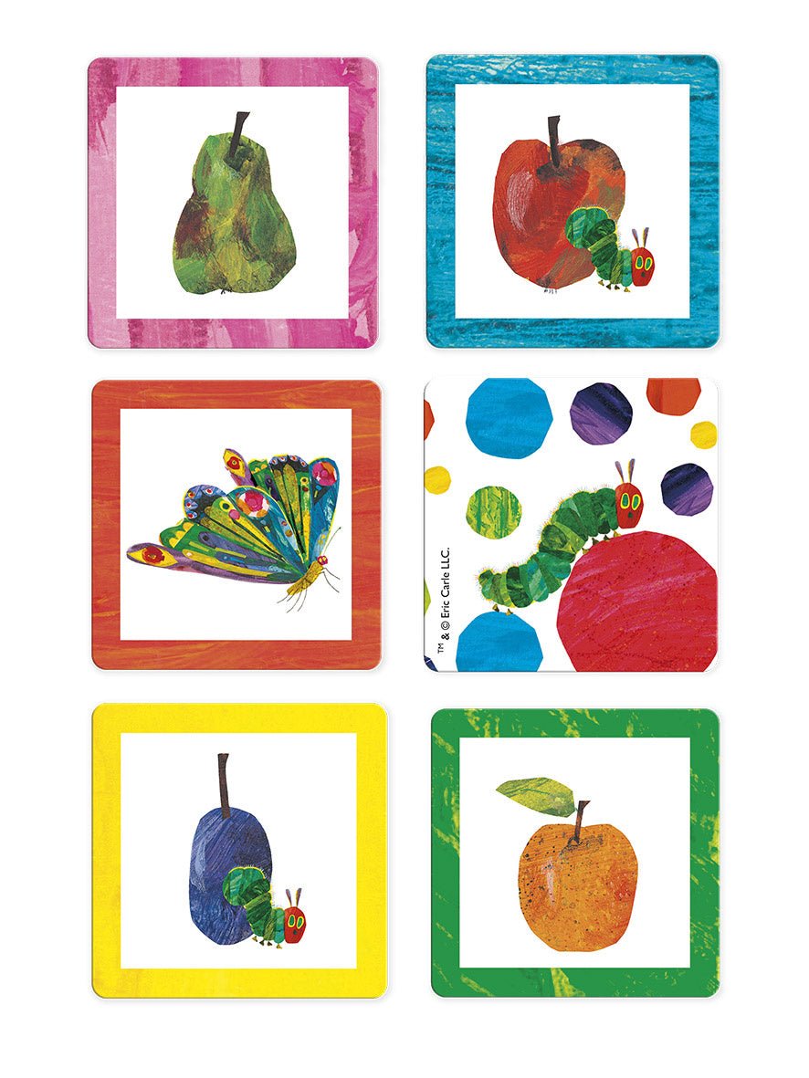 Waar o waar ligt toch dat andere knapperige appeltje? Of die heerlijke cupcake…? Om dit memospel te winnen moet je goed opletten om zoveel mogelijk plaatjes terug te vinden. Alle afbeeldingen van de lekkernijen komen uit het boek Rupsje Nooitgenoeg van Eric Carle, dat maakt dit geheugenspel extra leuk. Het spel bevat 40 kaartjes van zeer stevig karton. Voor kleinere kinderen is het verstandig eerst met een beperkt aantal kaartjes te beginnen.