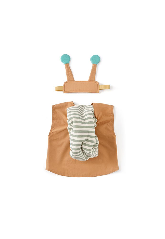 Laat kinderen als een schattige slak door de tuin glijden met deze verkleedset! Het vest heeft een afgeronde voorkant en een licht gewatteerde slakkenhuisvorm op de rug, met klittenbandsluitingen voor eenvoudig aan- en uitkleden. De set bevat ook een gevoerde hoofdband met zachte antennes, zodat kinderen hun avonturen in echte slakkenstijl kunnen beleven. Ideaal voor fantasierijk spel waarbij ze rustig of juist speels door de tuin kruipen.