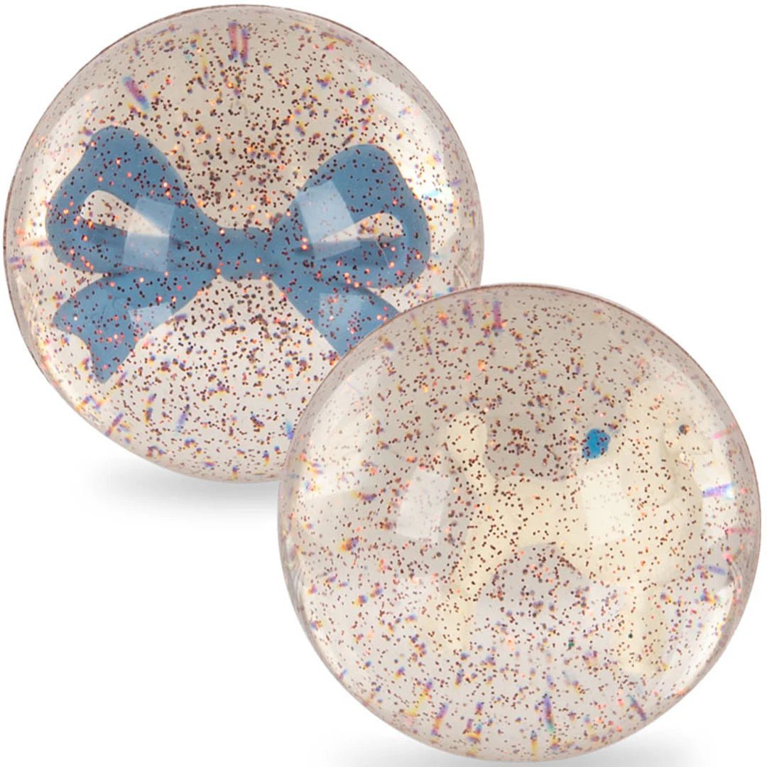 Transparante stuiterballen met kenmerkende 3D Konges Sløjd-figuren en glitters voor urenlang speelplezier.