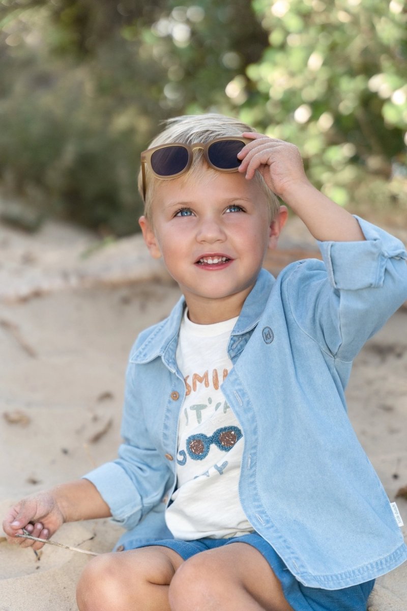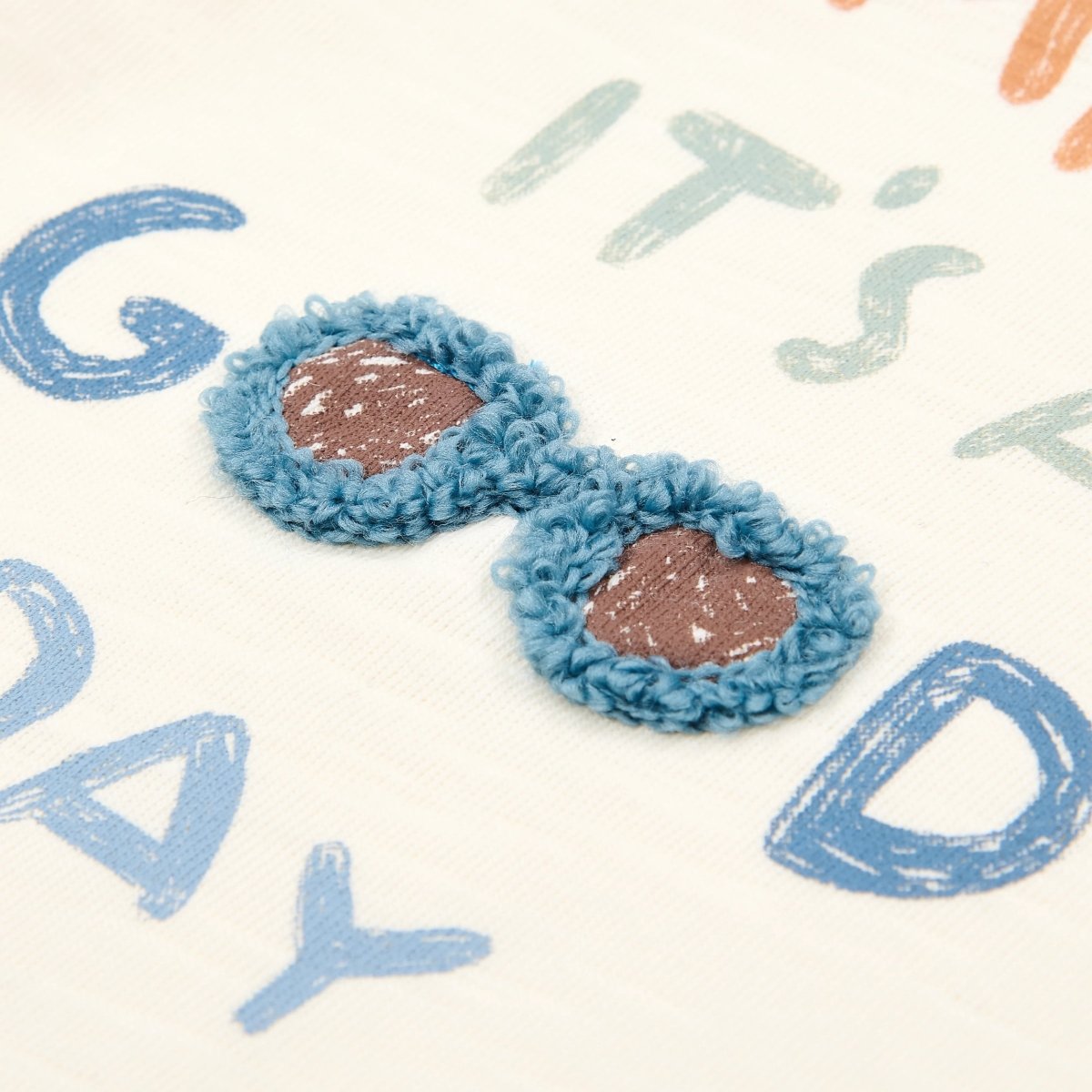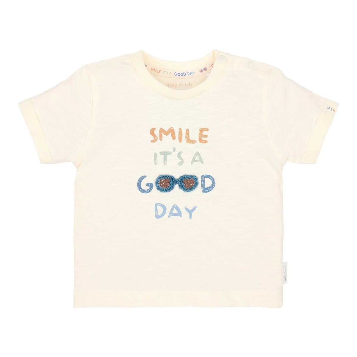 Begin elke dag met een glimlach in dit zachte T-shirt in een warme crème kleur. Het speelse artwork op de borst met de tekst “Smile, it’s a good day” en een zomers zonnebrilletje maakt het shirt extra vrolijk. De omslag aan de mouwen geeft een stoer accent, terwijl de soepele stof van 100% biologisch katoen, Oeko-Tex gecertificeerd, heerlijk zacht en veilig is voor de gevoelige huid.