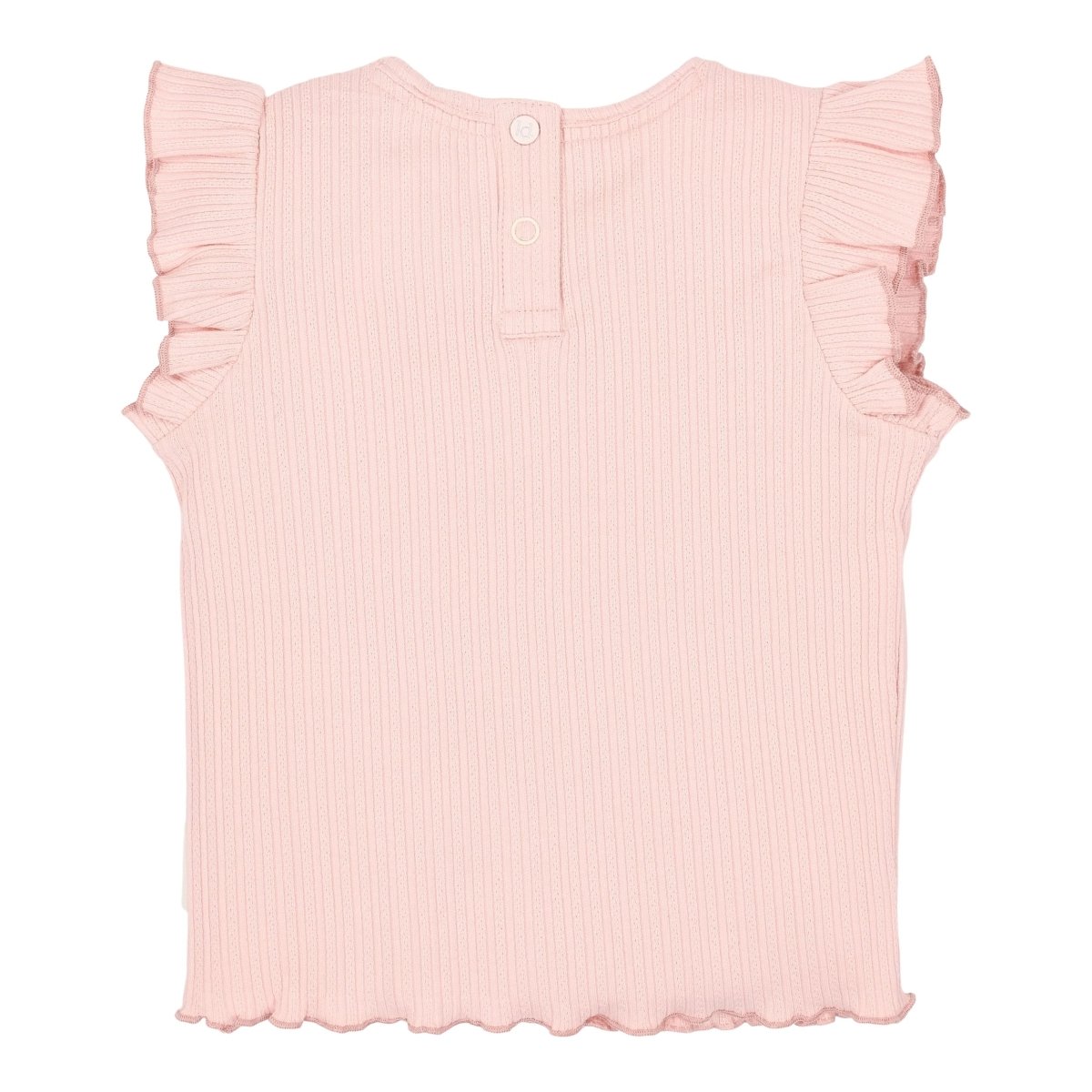 Zomerse dagen vragen om iets luchtigs, liefs en comfortabels. Dit mouwloze T-shirt in Fairy Pink is precies dat. Gemaakt van een zachte ribstof met fijne structuur die soepel meebeweegt en heerlijk zit. De schouders zijn afgewerkt met vrolijke ruches en op de borst prijkt een 3D “Bloom” artwork – een subtiele knipoog naar groei en bloei.