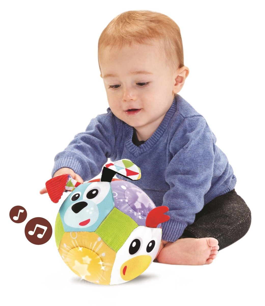 De Yookidoo Lights ‘N’ Music Fun Speelbal is voorzien van een handige clip waardoor je het speeltje gemakkelijk aan bijvoorbeeld de wieg of kinderwagen kunt bevestigen. De speelbal maakt vrolijke geluiden en heeft knipperende lichtjes. Indien gewenst kan de speelbal ook zonder licht en geluid worden gebruikt. De bal is namelijk gemaakt van stoffen met verschillende structuren zodat je kindje altijd iets te ontdekken heeft